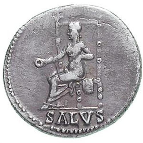 Roman Empire Coins. Nero (54-68). Denarius. D/ NERO CAESAR AVGVSTVS. Testa laureata a destra. R/ SALVS. La Salus seduta a sinistra. RIC 60. gr. 3.32 R. AG. qSPL/BB. Di ottima qualit. Patina di monetiere.