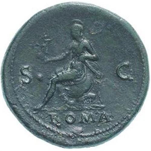 Roman Empire Coins. Nero (54-68). Sestertius. D/ NERO CLAVD CAESAR AVG GER PM TR P IMP PP. Busto laureato a destra, con egida. R/ ROMA SC. Roma, seduta a sinistra su scudo e corazza, tiene Vittoria e parazonium. RIC 273. gr. 26.49 AE. Bel BB+. Patina verde.