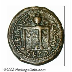 <TR><TD width="100%"><TABLE cellSpacing=1 cellPadding=3 width="100%" border=0><TBODY><TR><TD width="100%" bgColor=#79735c><FONT face=arial color=#ffffff size=3><B>Description</B> </FONT></TD></TR><TR><TD width="100%" bgColor=#ffffff><FONT face=arial size=2><B>Nero,</B></I> 54-68 A.D., AE semis (5.28 g), Laureate head right/Table upon which are an urn, wreath, RIC 228 (R2), VF. Full legends, good strike and old toning make this diminutive Early Empire bronze a fetching piece. </FONT></TD></TR></TBODY></TABLE></TD></TR></TBODY></TABLE><BR><A name=PricesRealized></A><TABLE cellSpacing=0 cellPadding=0 width="100%" bgColor=#000000 border=0><TBODY><TR><TD width="100%"><TABLE cellSpacing=1 cellPadding=3 width="100%" border=0><TBODY><TR><TD width="100%" bgColor=#79735c><A name=PR><FONT face=arial color=#ffffff size=3><B>Previous Prices from Heritage Auctions</B> </FONT></A></TD></TR><TR><TD bgColor=#f6f6ed>No Prior Data Recorded </TD></TR><TR><TD bgColor=#ffffff><FONT face=arial size=1 ?>PLEASE NOTE: All prices realized reflect the final hammer price PLUS the buyer's premium in auctions that charge a buyer's premium. Each item has a notation at the top of the listing indicating whether that lot included a buyer's premium. Example: A item that sells with a final hammer price of $100 and a 20% buyer's premium will display with a price realized of $120. All information listed is intended to be as accurate as possible, but errors are possible. Please use this guide carefully and inform us of any inaccuracies. </FONT></TD></TR></TBODY></TABLE></TD></TR></TBODY></TABLE><BR><TABLE cellSpacing=0 cellPadding=0 width="100%" bgColor=#000000 border=0><TBODY><TR><TD width="100%"><TABLE cellSpacing=1 cellPadding=3 width="100%" border=0><TBODY><TR><TD width="100%" bgColor=#79735c colSpan=6><FONT face=arial color=#ffffff size=3><B>Price Guide*</B> </FONT></TD></TR><TR bgColor=#f6f6ed><TD align=middle><B>Grade</B> </TD><TD align=middle><B>Coin World<BR>(Trends)</B> </TD><TD align=middle><B>Numismedia<BR>Retail</B> </TD><TD align=middle><B>Numismedia<BR>Wholesale</B> </TD><TD align=middle><B>Coin<BR>Universe</B> </TD><TD align=middle><B>Heritage<BR>Value Index</B> </TD></TR><TR bgColor=#ffffff><TD align=middle>15</TD><TD align=right>---</TD><TD align=right>---</TD><TD align=right>---</TD><TD align=right>---</TD><TD align=right>---</TD></TR><TR style="FONT-WEIGHT: bold" bgColor=#cccfdd><TD align=middle>20</TD><TD align=right>---</TD><TD align=right>---</TD><TD align=right>---</TD><TD align=right>---</TD><TD align=right>---</TD></TR><TR bgColor=#ffffff><TD align=middle>25</TD><TD align=right>---</TD><TD align=right>---</TD><TD align=right>---</TD><TD align=right>---</TD><TD align=right>---</TD></TR><TR bgColor=#ffffff><TD colSpan=6><FONT size=1>*All information listed is intended to be as accurate as possible, but errors are possible. No item may be returned or refused based on this information which is provided as a service to our customers. You should contact each pricing source directly to determine the accuracy of this information. </FONT></TD></TR></TBODY></TABLE></TD></TR></TBODY></TABLE><BR><TABLE cellSpacing=0 cellPadding=0 width="100%" bgColor=#000000 border=0><TBODY><TR><TD width="100%"><TABLE cellSpacing=1 cellPadding=3 width="100%" border=0><TBODY><TR><TD width="100%" bgColor=#79735c><FONT face=arial color=#ffffff size=3><B>Population Guide</B> </FONT></TD></TR><TR bgColor=#ffffff><TD align=middle><!-- Begin Output of Population Grid--><TABLE cellSpacing=0 cellPadding=0 width="100%" border=0><TBODY><TR><TD vAlign=center><TABLE cellSpacing=0 width="100%" border=1 cellsadding="3"><TBODY><TR><TD vAlign=center><TABLE cellSpacing=0 cellPadding=3 width="100%" border=1><TBODY><TR><TD vAlign=center align=middle bgColor=#f0f1e8 colSpan=2 <CENTER><FONT face=Arial size=2><B>PCGS Pop </B></FONT><CENTER></CENTER></TD><TD vAlign=center align=middle bgColor=#f0f1e8 colSpan=2><CENTER><FONT face=Arial size=2><B>NGC Pop</B></CENTER></FONT></TD></TR><TR><TD vAlign=center><FONT face=Arial size=2>(20)</FONT> </TD><TD vAlign=center align=right><FONT face=Arial size=2>1</FONT> </TD><TD vAlign=center><FONT face=Arial size=2>(20)</FONT> </TD><TD vAlign=center align=right><FONT face=Arial size=2>0</FONT> </TD></TR><TR><TD vAlign=center><FONT face=Arial size=2>(>20)</FONT> </TD><TD vAlign=center align=right><FONT face=Arial size=2>1</FONT> </TD><TD vAlign=center><FONT face=Arial size=2>(>20)</FONT> </TD><TD vAlign=center align=right><FONT face=Arial size=2>0</FONT> </TD></TR></TBODY></TABLE></TD></TR></TBODY></TABLE></TD></TR></TBODY></TABLE><!-- End Output of Population Grid--></TD></TR></TBODY></TABLE></TD></TR></TBODY></TABLE><BR><TABLE cellSpacing=0 cellPadding=0 width="100%" bgColor=#000000 border=0><TBODY><TR> Important notice: We expect to be auctioning lots at the rate of 200-250 per hour. On occasion eBay live bid software cannot keep up with the pace of the auctions where 4-5 lots per minute can hammer down, so we recommend that you place a realistic absentee bid now as insurance to avoid disappointment. Also please note that all Heritage/CAA lots purchased through eBay Live carry a 20% Buyer's Premium. Please make sure you read the Terms and Conditions.