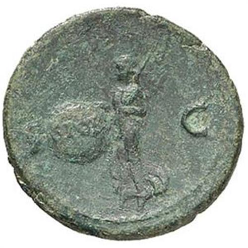 Nerone (54-68). Asse. D/ Testa laureata a destra. R/ SC. La Vittoria incede a sinistra recando uno scudo rotondo con iscrizione SPQR. RIC 312. gr. 9.93 AE. Bel BB+. Patina verde oliva.