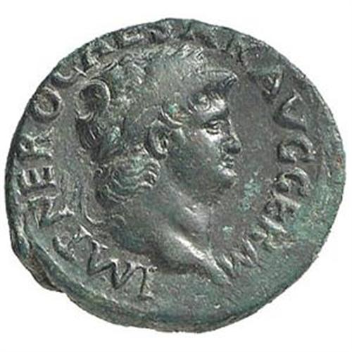 Impero Romano. Nerone (54-68). Asse. D/ IMP NERO CAESAR AVG GERM. Testa laureata a destra. R/ SC. La Vittoria vola a destra portando uno scudo con iscrizione SPQR. RIC 351. gr. 9.61 AE. Bel BB+.