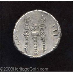 <TABLE cellSpacing=0 cellPadding=0 width="100%" bgColor=#000000 border=0><TBODY> <TR><TD width="100%"><TABLE cellSpacing=1 cellPadding=3 width="100%" border=0><TBODY><TR><TD width="100%" bgColor=#79735c><FONT face=arial color=#ffffff size=3><B>Description</B> </FONT></TD></TR><TR><TD width="100%" bgColor=#ffffff><FONT face=arial size=2><B>Nerva.</B></I> A.D. 96-98. AR cistophoric tetradrachm (26 mm, 10.80 g). Asia Minor, A.D. 97. Laureate head right / Legionary eagle between two standards. RIC 119; BMC 80; RSC 44a. Nice VF. </FONT></TD></TR></TBODY></TABLE></TD></TR></TBODY></TABLE><BR><A name=PricesRealized></A><TABLE cellSpacing=0 cellPadding=0 width="100%" bgColor=#000000 border=0><TBODY><TR><TD width="100%"><TABLE cellSpacing=1 cellPadding=3 width="100%" border=0><TBODY><TR><TD width="100%" bgColor=#79735c><A name=PR><FONT face=arial color=#ffffff size=3><B>Previous Prices from Heritage Auctions</B> </FONT></A></TD></TR><TR><TD bgColor=#f6f6ed>No Prior Data Recorded </TD></TR><TR><TD bgColor=#ffffff><FONT face=arial size=1 ?>PLEASE NOTE: All prices realized reflect the final hammer price PLUS the buyer's premium in auctions that charge a buyer's premium. Each item has a notation at the top of the listing indicating whether that lot included a buyer's premium. Example: A item that sells with a final hammer price of $100 and a 20% buyer's premium will display with a price realized of $120. All information listed is intended to be as accurate as possible, but errors are possible. Please use this guide carefully and inform us of any inaccuracies. </FONT></TD></TR></TBODY></TABLE></TD></TR></TBODY></TABLE><BR><TABLE cellSpacing=0 cellPadding=0 width="100%" bgColor=#000000 border=0><TBODY><TR><TD width="100%"><TABLE cellSpacing=1 cellPadding=3 width="100%" border=0><TBODY><TR><TD width="100%" bgColor=#79735c colSpan=6><FONT face=arial color=#ffffff size=3><B>Price Guide*</B> </FONT></TD></TR><TR bgColor=#f6f6ed><TD align=middle><B>Grade</B> </TD><TD align=middle><B>Coin World<BR>(Trends)</B> </TD><TD align=middle><B>Numismedia<BR>Retail</B> </TD><TD align=middle><B>Numismedia<BR>Wholesale</B> </TD><TD align=middle><B>Coin<BR>Universe</B> </TD><TD align=middle><B>Heritage<BR>Value Index</B> </TD></TR><TR bgColor=#ffffff><TD colSpan=6><FONT size=1>*All information listed is intended to be as accurate as possible, but errors are possible. No item may be returned or refused based on this information which is provided as a service to our customers. You should contact each pricing source directly to determine the accuracy of this information. </FONT></TD></TR></TBODY></TABLE></TD></TR></TBODY></TABLE><BR><TABLE cellSpacing=0 cellPadding=0 width="100%" bgColor=#000000 border=0><TBODY><TR><TD width="100%"><TABLE cellSpacing=1 cellPadding=3 width="100%" border=0><TBODY><TR><TD width="100%" bgColor=#79735c><FONT face=arial color=#ffffff size=3><B>Population Guide</B> </FONT></TD></TR><TR bgColor=#ffffff> Important notice: Heritage usually auctions material at the rate of 200-250 lots per hour. On some occasions eBay Live bid software or the Internet may not be able to keep up with the pace of the auction. We recommend placing a realistic absentee bid now as insurance to avoid disappointment. Occasionally the auctioneer may eliminate or reject an eBay Live bid, and the auctioneer may also reopen a lot after the close of the eBay live bidding (usually because we missed an audience bid), and may reject your bid even if it shows you as the winning bidder. By bidding via eBay Live, you agree that Heritage may award the lot to another bidder at its sole discretion under the circumstances described above or any other reasonable circumstances. Also please note that all Heritage lots purchased through eBay Live carry a 20% Buyer's Premium. Please make sure you read the Terms and Conditions before you bid.</TD></TR></TBODY></TABLE></TD></TR></TBODY></TABLE>