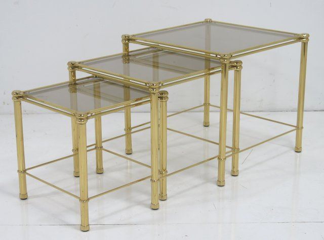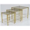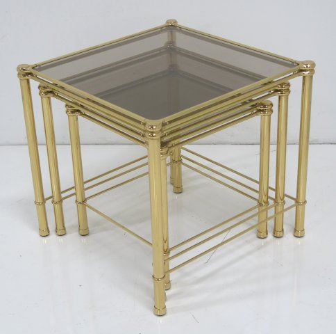 Circa 1970. Side tables with smoked glass labeled. Made in Italy. Approx. 19 1/4" H x 20 3/4" W x 20 3/4" D.