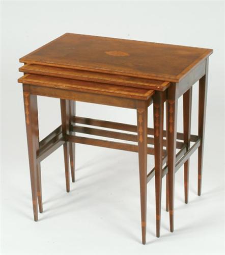 Nest of Three Mahogany Occasional Tables in the 18th Century manner, inlaid medallions and crossband