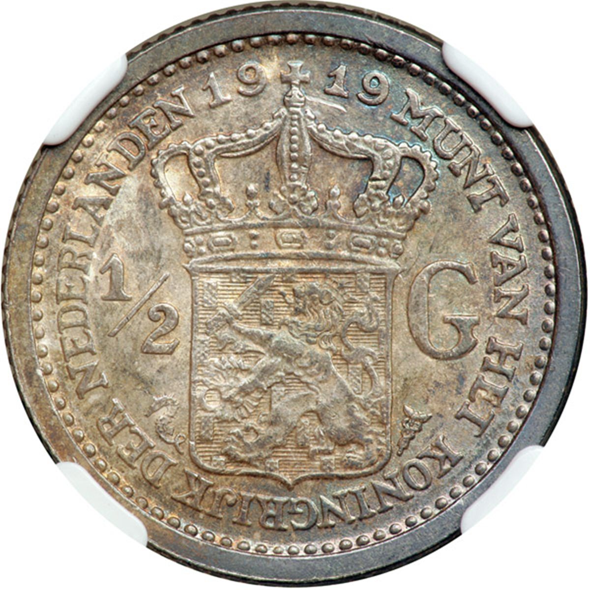 Netherlands. 1/2 Gulden, 1919. NGC MS63