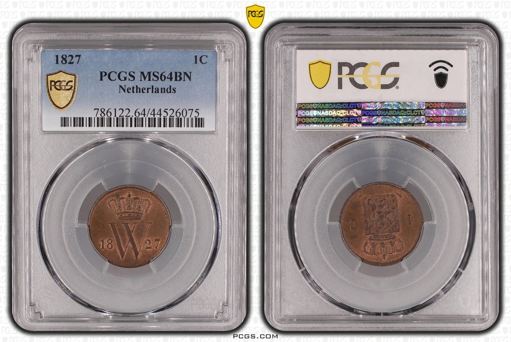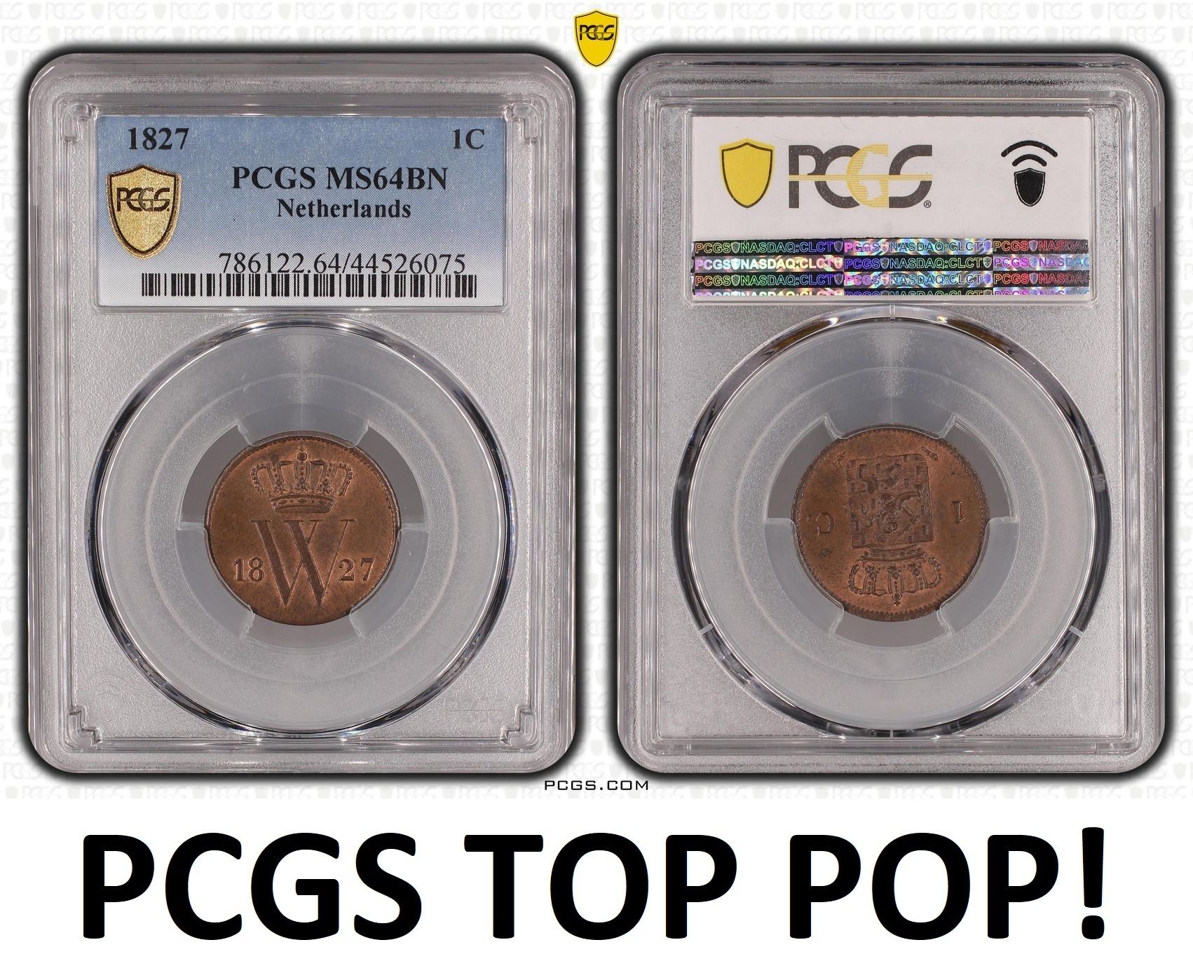 Netherlands 1 Cent 1827 PCGS MS64BN TOP POP