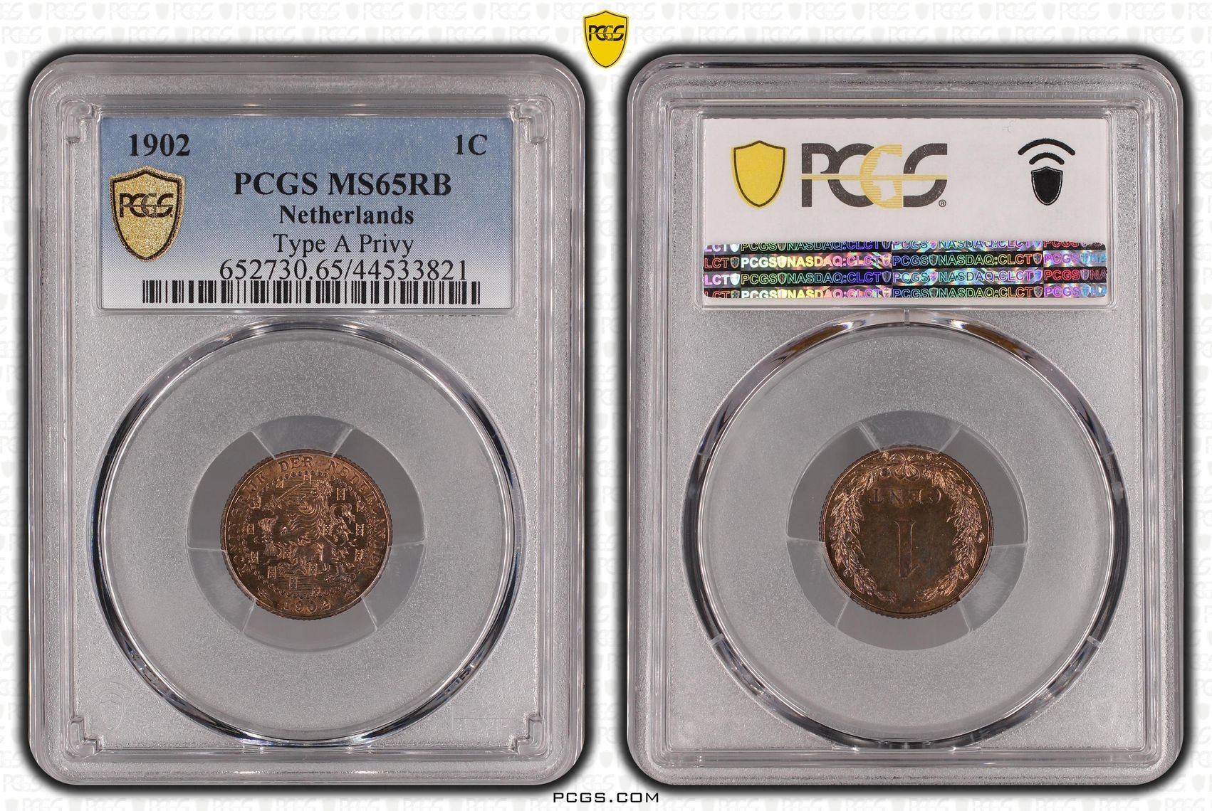 Netherlands 1 Cent 1902 Type A Privy PCGS MS65RB