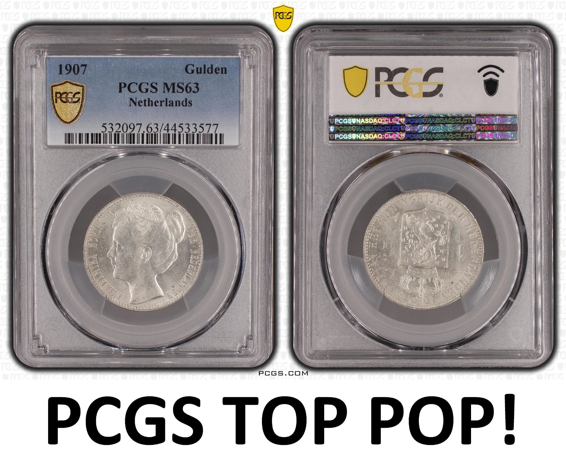 Netherlands 1 Gulden 1907 PCGS MS63 TOP POP