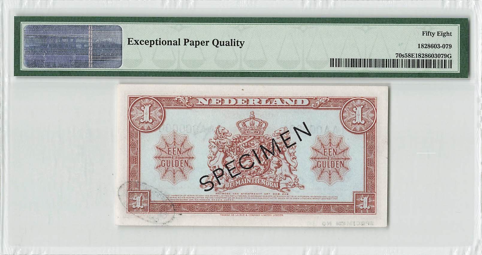 Netherlands 1 Gulden 1945 Specimen Pick 70s PMG Choice About UNC 58 EPQ