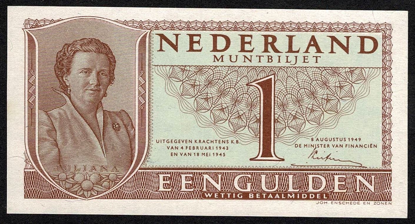 Netherlands 1 Gulden 1949 AU/UNC State Note Pick 72