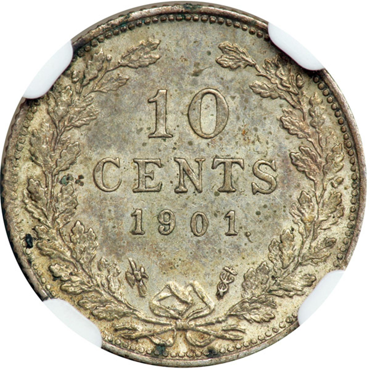 Netherlands. 10 Cents, 1901. KM-119. Wilhelmina I. Trace of luster. NGC graded EF-45.
