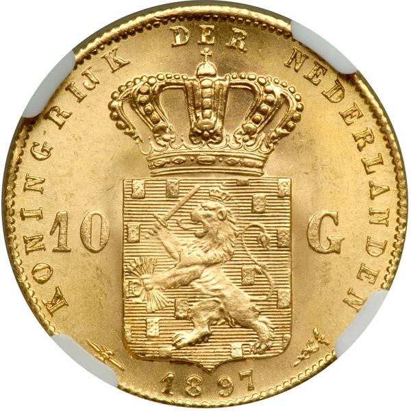 Netherlands. 10 Gulden, 1897. NGC MS66
