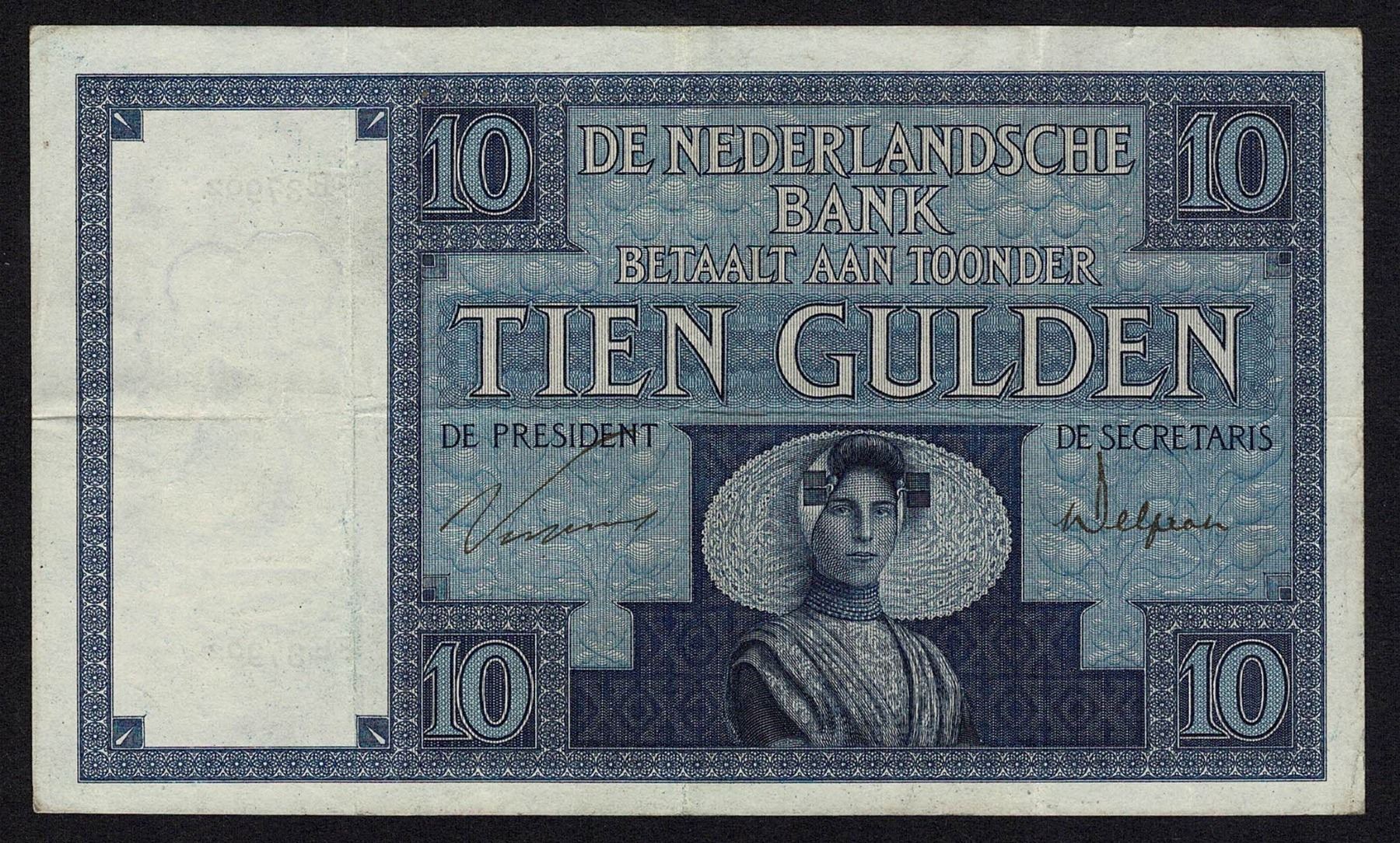 Netherlands 10 Gulden 1924 Zeeland Girl Pick 43a