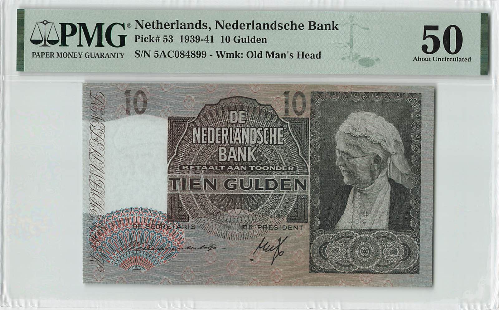 Netherlands 10 Gulden 1940 Queen Emma Pick 53 PMG About UNC 50
