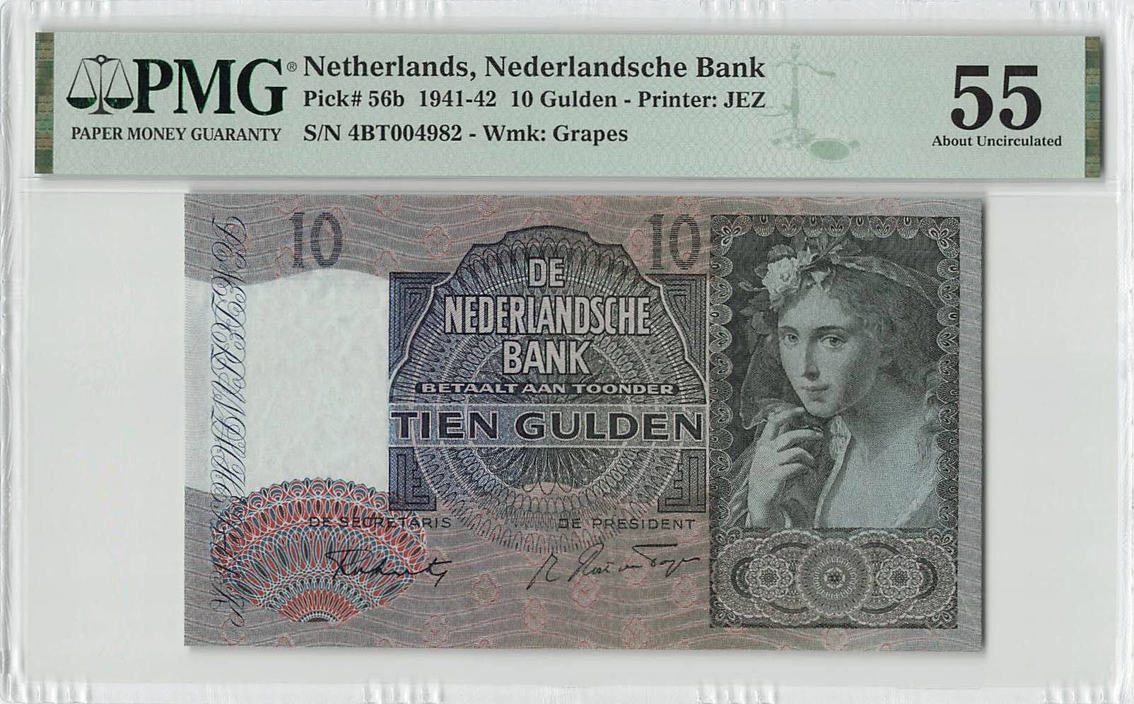 Netherlands 10 Gulden 1942 Girl with Grapes Pick 56b PMG About Uncirculated 55