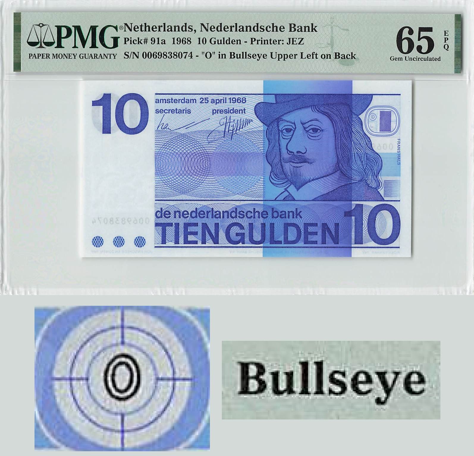 Netherlands 10 Gulden 1968 Frans Hals 'Bullseye' Pick 91a PMG Gem Uncirculated 65 EPQ