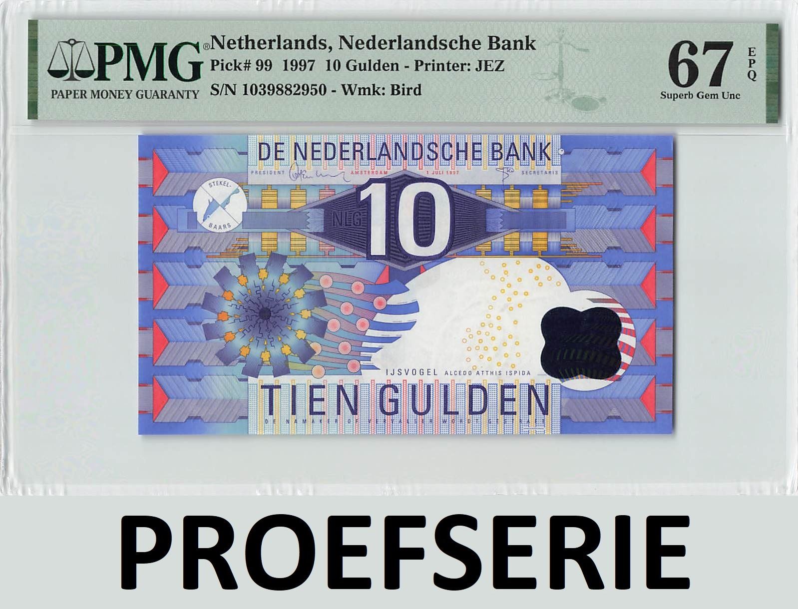 Netherlands 10 Gulden 1997 Proefserie IJsvogel Pick 99 PMG Superb Gem Uncirculated 67 EPQ
