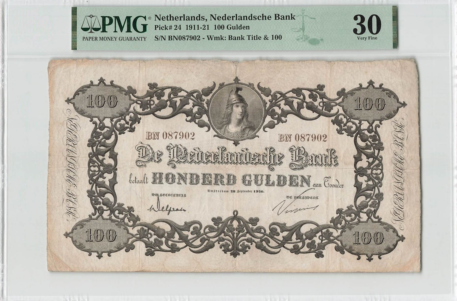 Netherlands 100 Gulden 1920 Reliefrand Pick 24 PMG Very Fine 30