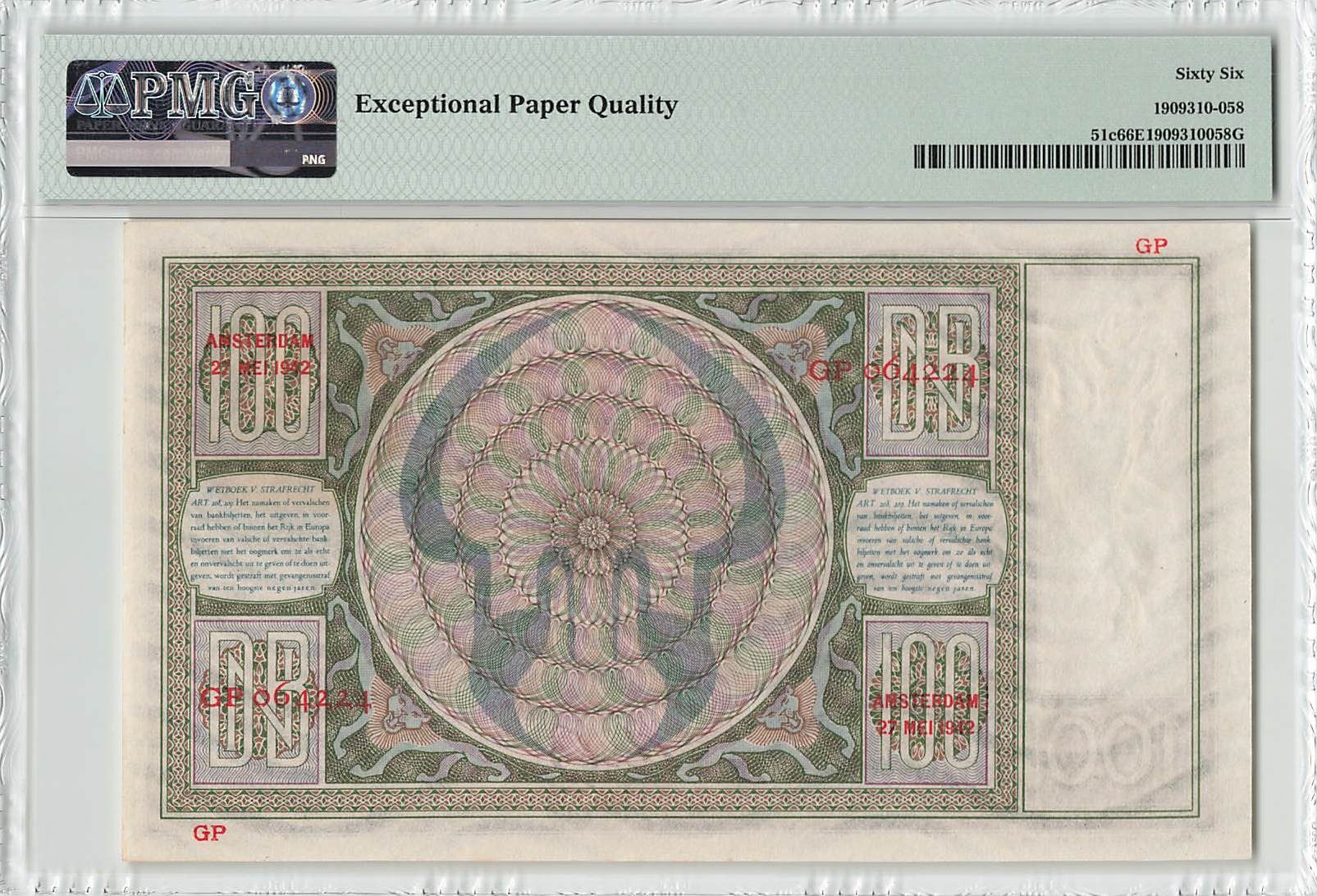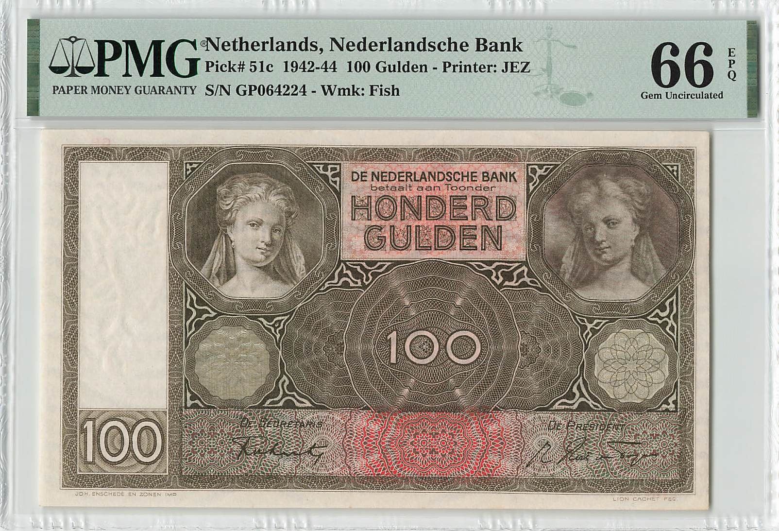 Netherlands 100 Gulden 1942 JEZ Pick 51c PMG Gem Uncirculated 66 EPQ
