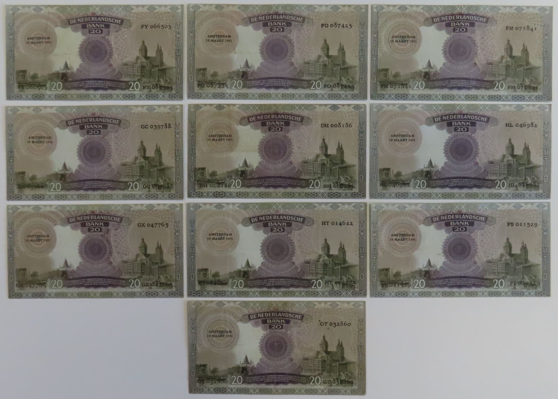 Netherlands 10x 20 Gulden 1941 Queen Emma Pick 54 (3)