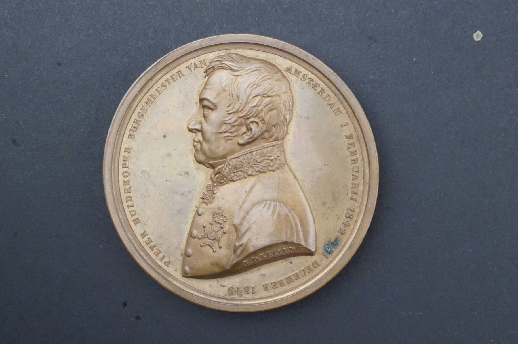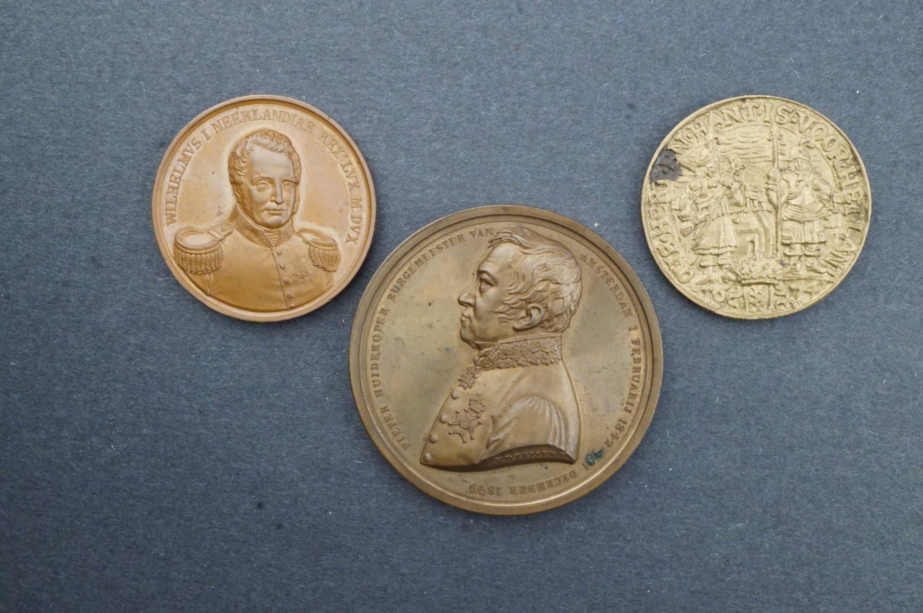 3 Pcs. William of Orange Amsterdam Commemorative 2nd. cast DeVries DeJong pl.ix #6 UNC AE-41, 29.9 grs, Wilhelm I Commemorative FDC AE-42, 39.7 grs. Edge: Plain & Pieter Huidekoper Mayor of Amsterdam 1842-1849 by V.D. Kellen FDC AE-58, 90.6 grs. Edge Plain.