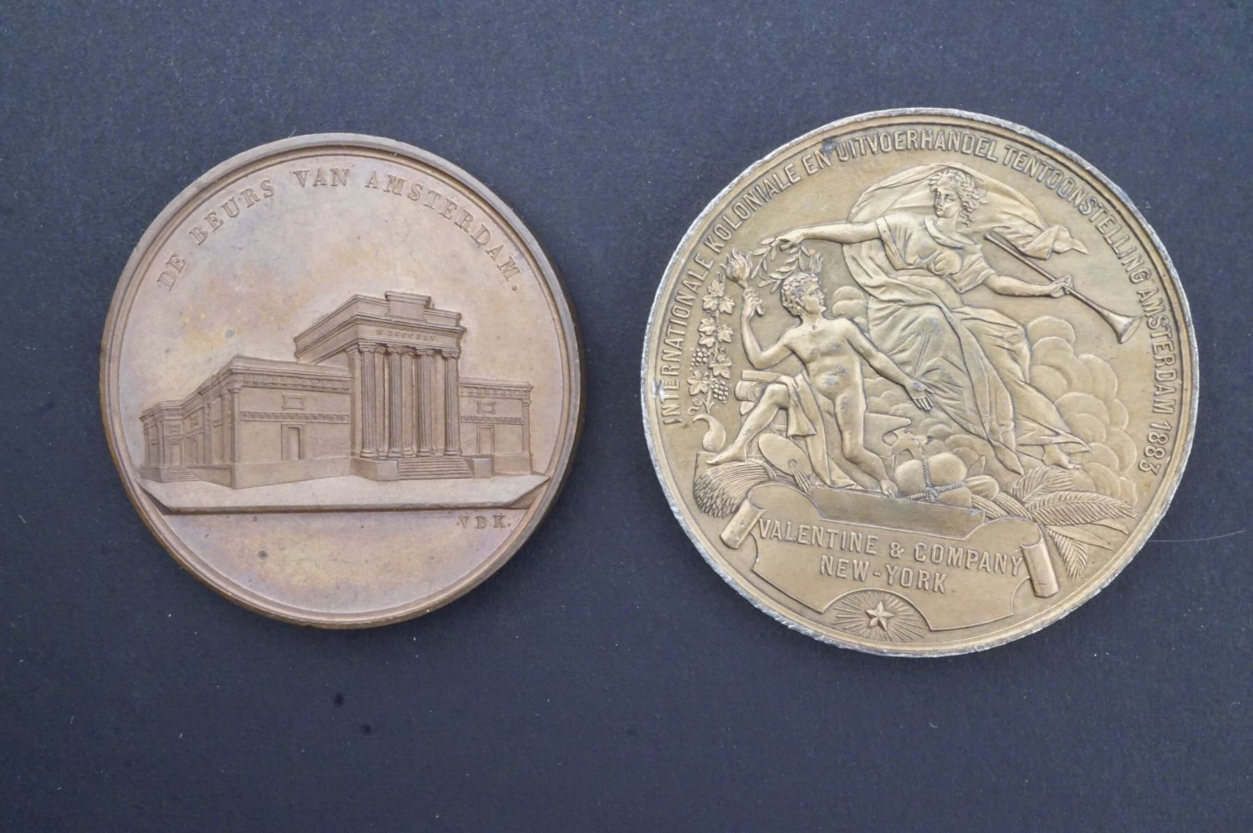 2 Pcs. Bourse in Amsterdam by V.D.Kellen FDC AE-48, 55.0 grs. Edge: Plain & Amsterdam World's Fair Valentine and Co. Ny, Ny, EF, WM-50, 48.3 grs. Edge: Plain