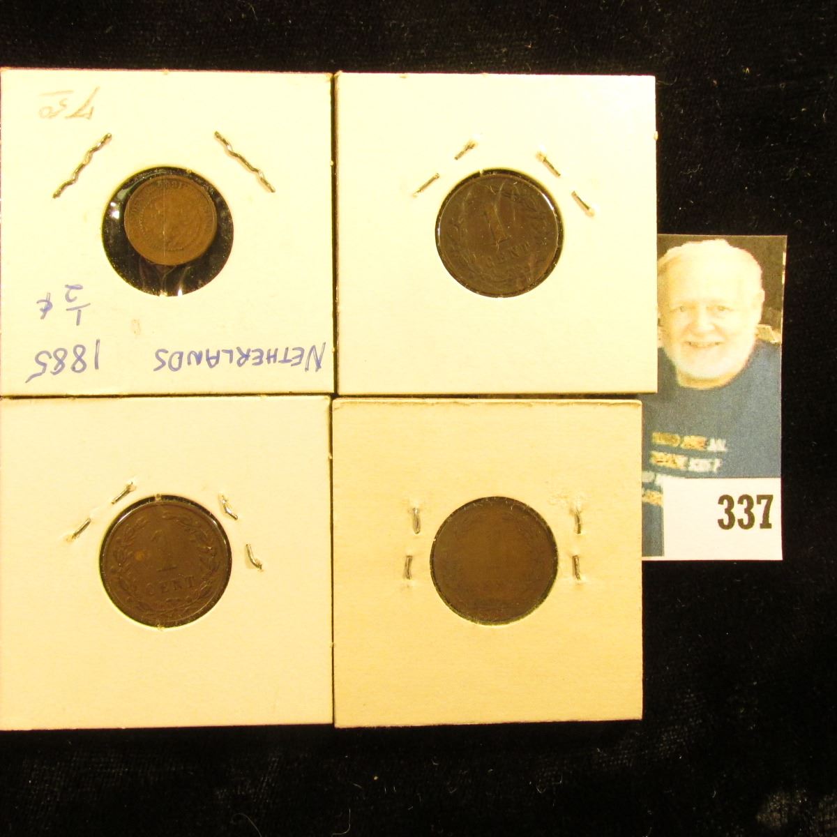 Netherlands: 1885 Half Cent, VF; 1877 & (2) 1901 One Cent Coins F-VF.