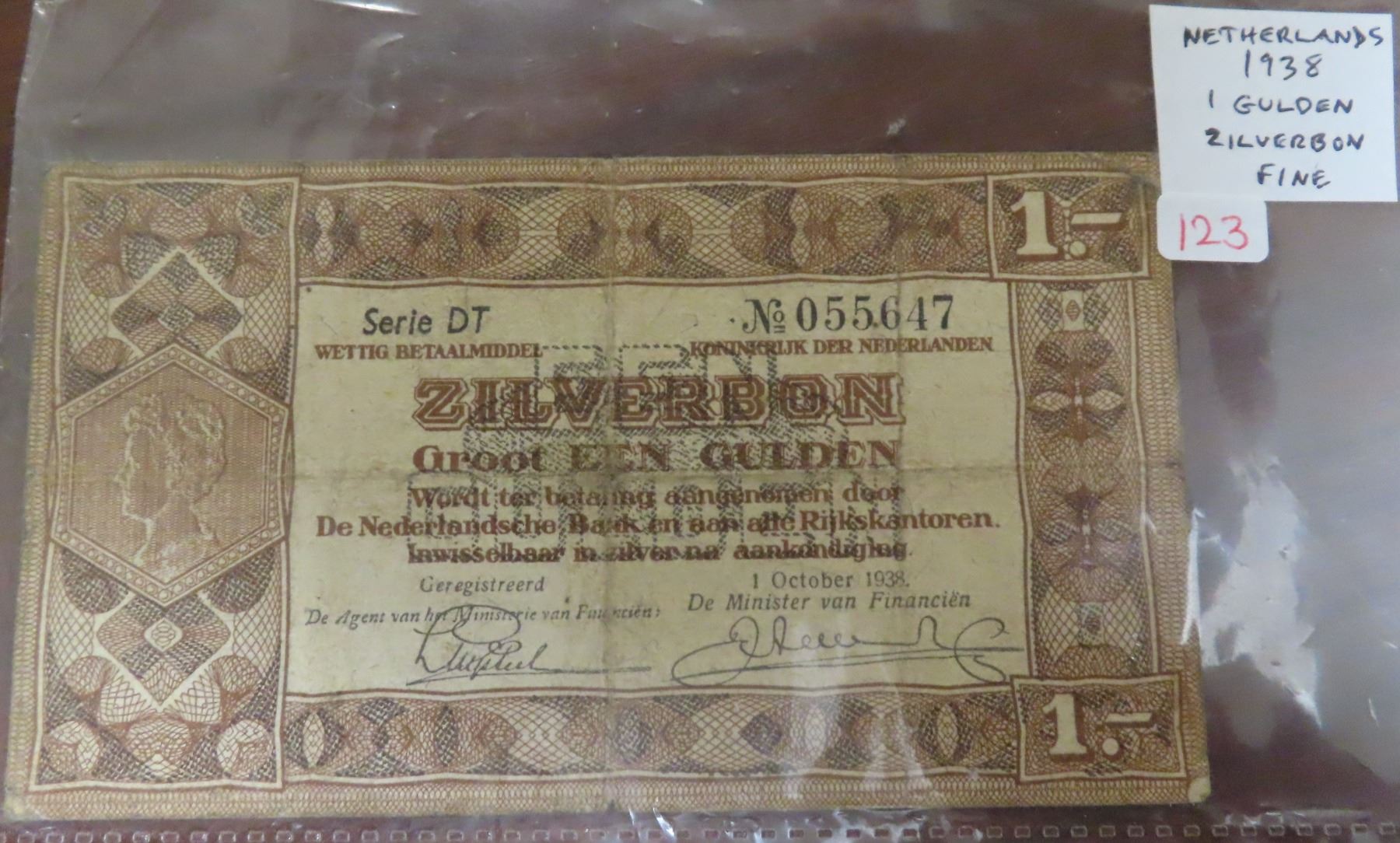 Netherlands. 1938 1 Gulden Zilverbon. At the time, you could take this to your Dutch bank & demand payment in silver coinage. Fine.