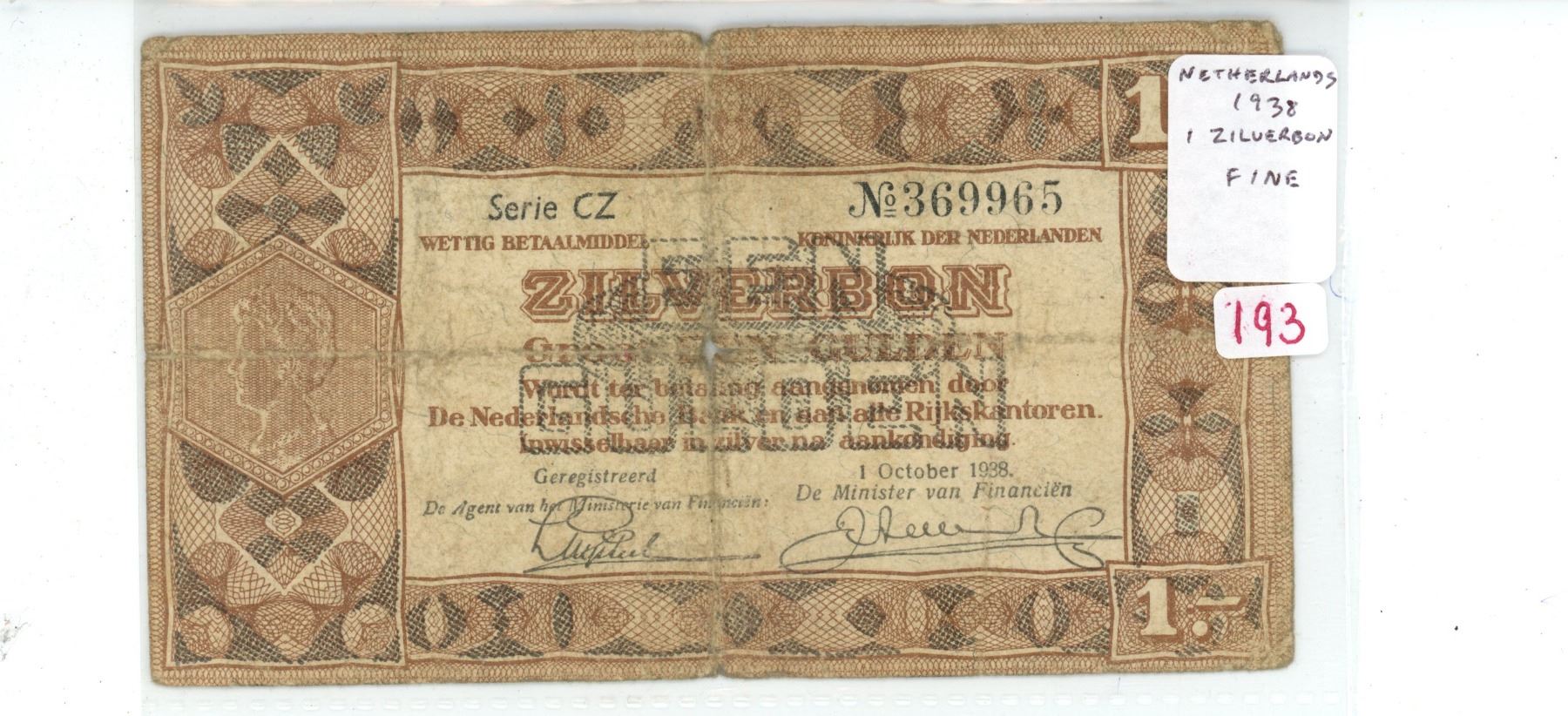 Netherlands. 1938 1 Zilverbon. (At the time you could take it to the bank and demand a silver gulden). Fine.