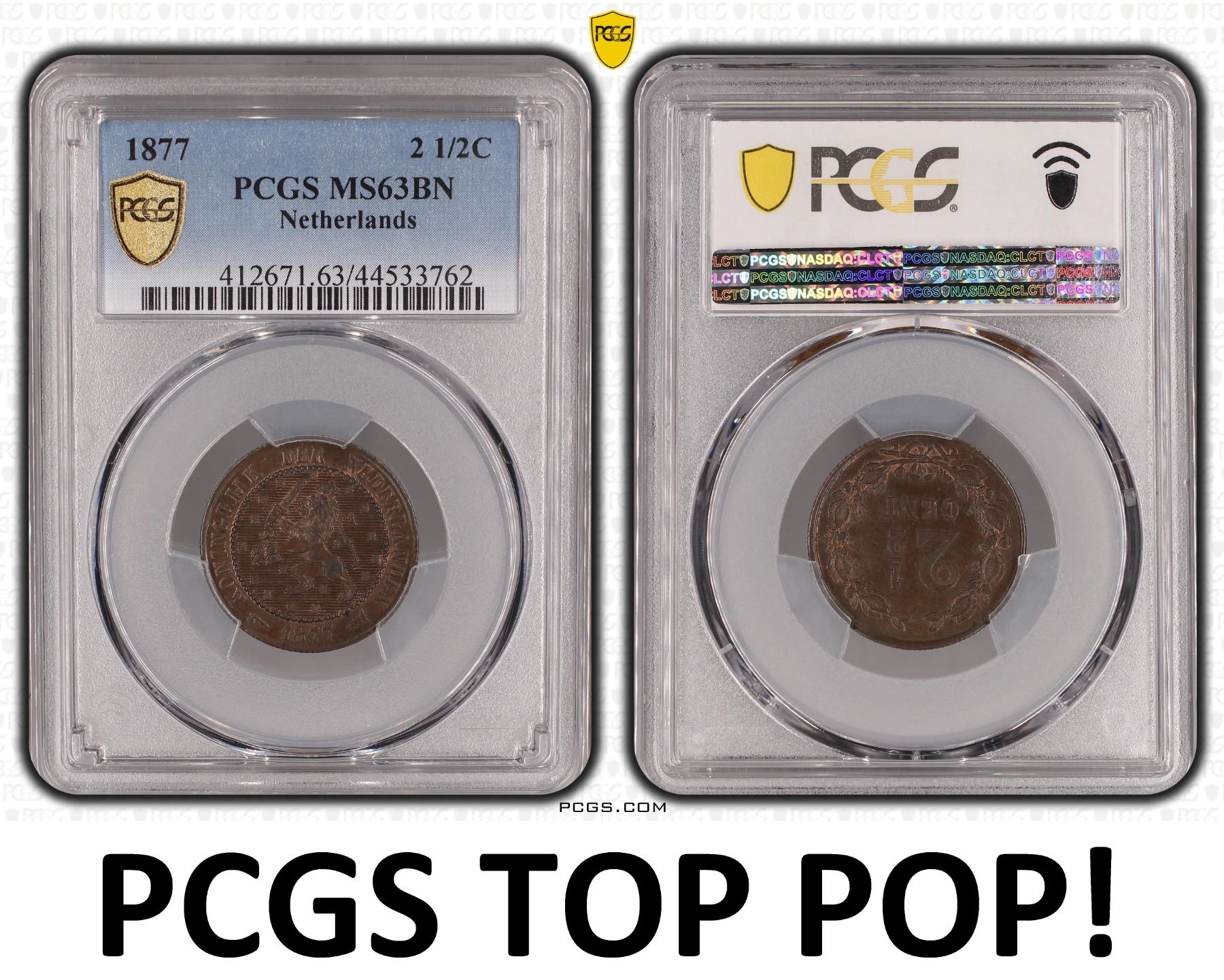Netherlands 2½ Cent 1877 PCGS MS63BN TOP POP