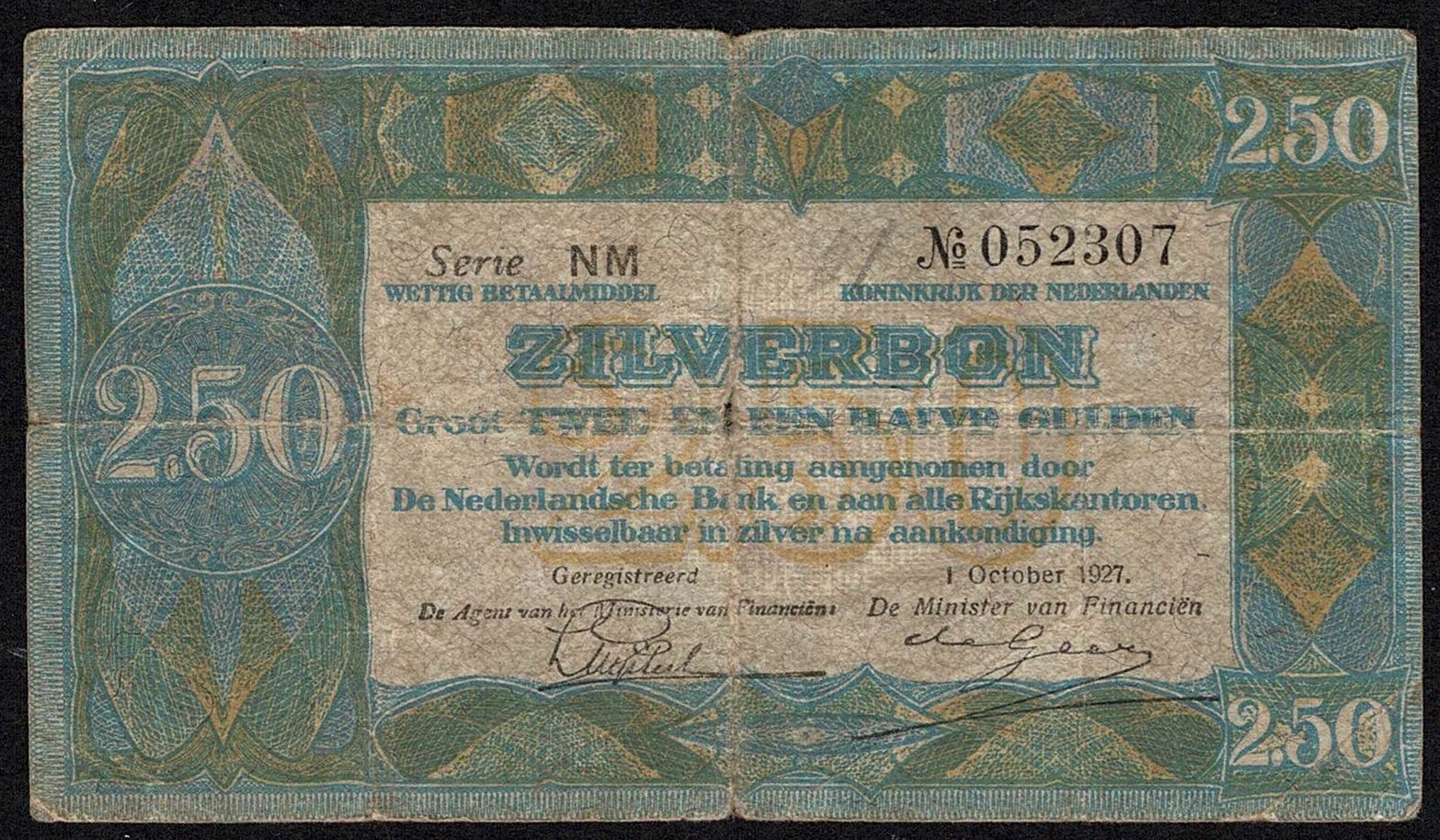 Netherlands 2½ Gulden 1927 Silver Note Pick 20