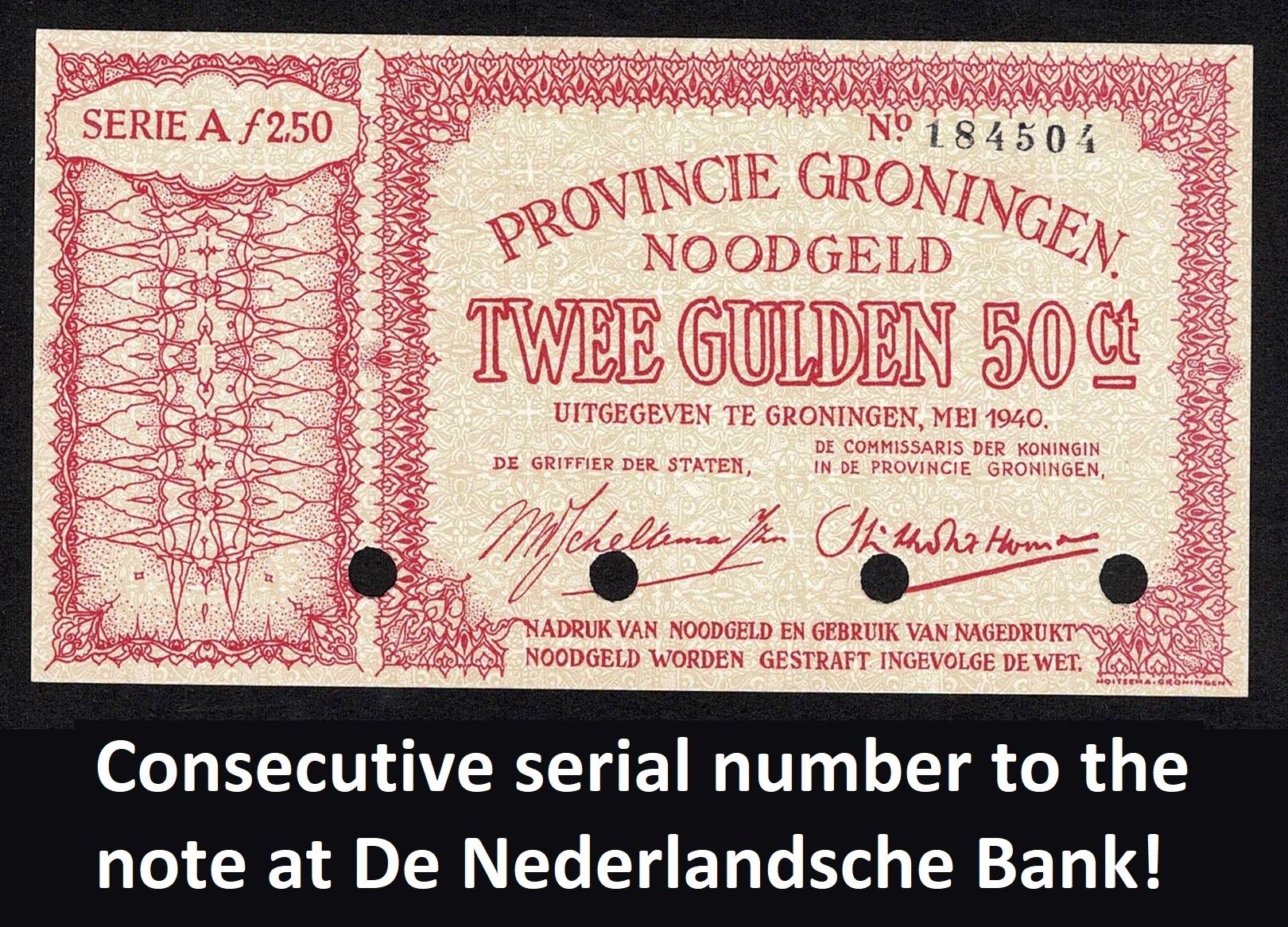 Netherlands 2½ Gulden 1940 Groningen Noodgeld PR/UNC - EF/UNC Emergency Money with watermark PL475.2.b (collection A.M. van de Waal)