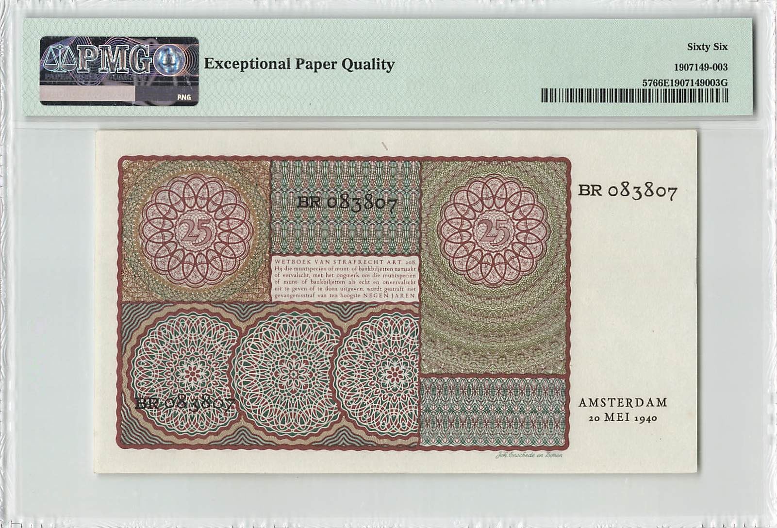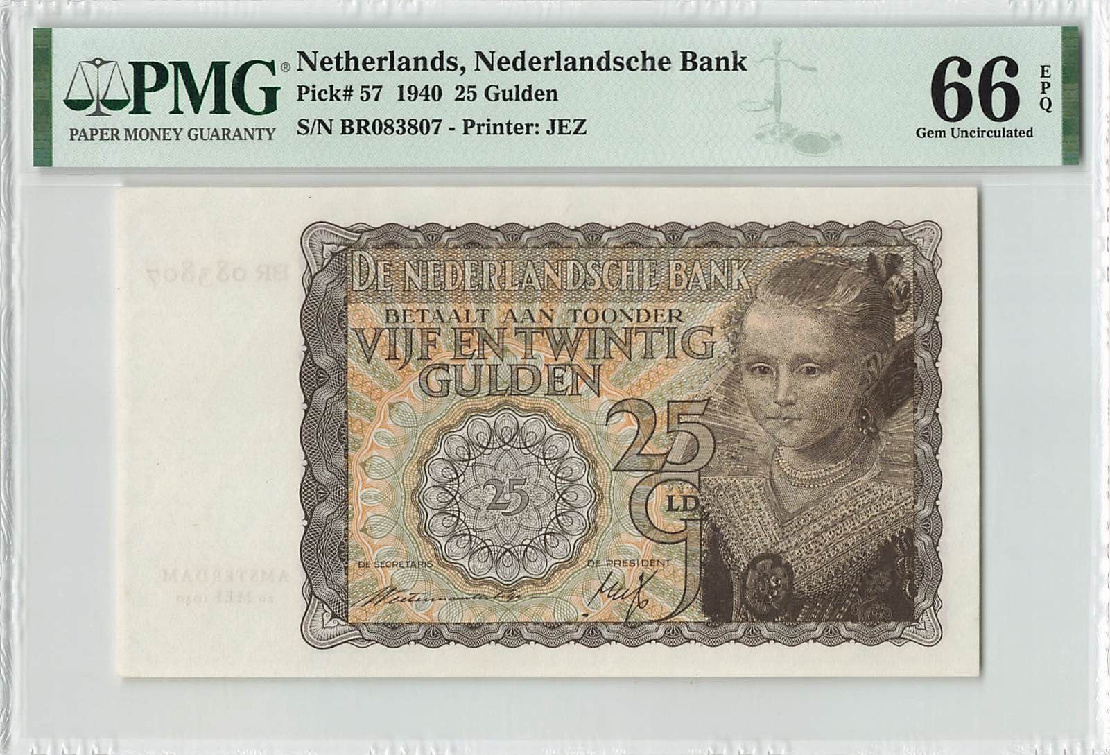 Netherlands 25 Gulden 1940 Princess JEZ Pick 57 PMG Gem Uncriculated 66 EPQ