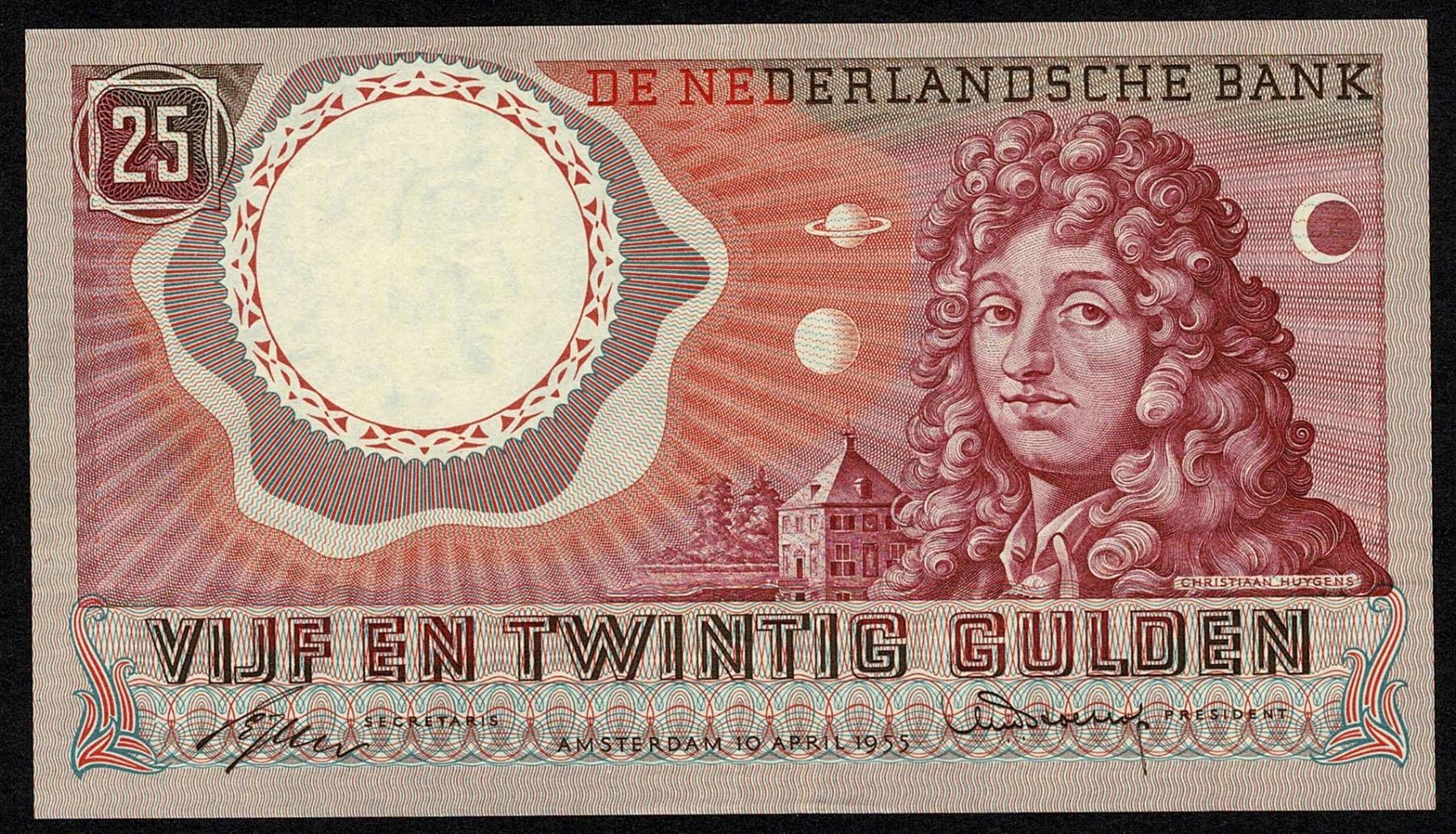 Netherlands 25 Gulden 1955 EF C. Huygens Pick 87 (1)