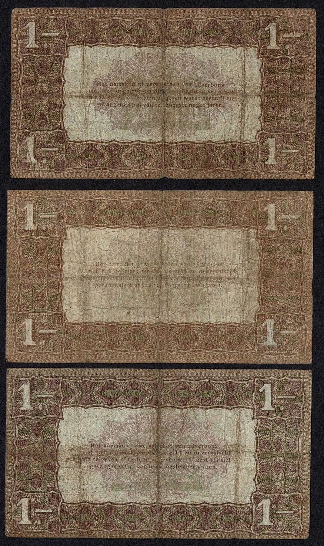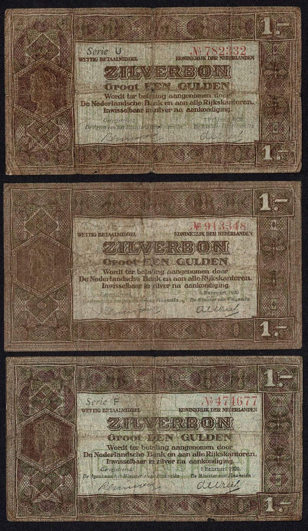 Netherlands 3x 1 Gulden 1920 Silver Note Pick 15