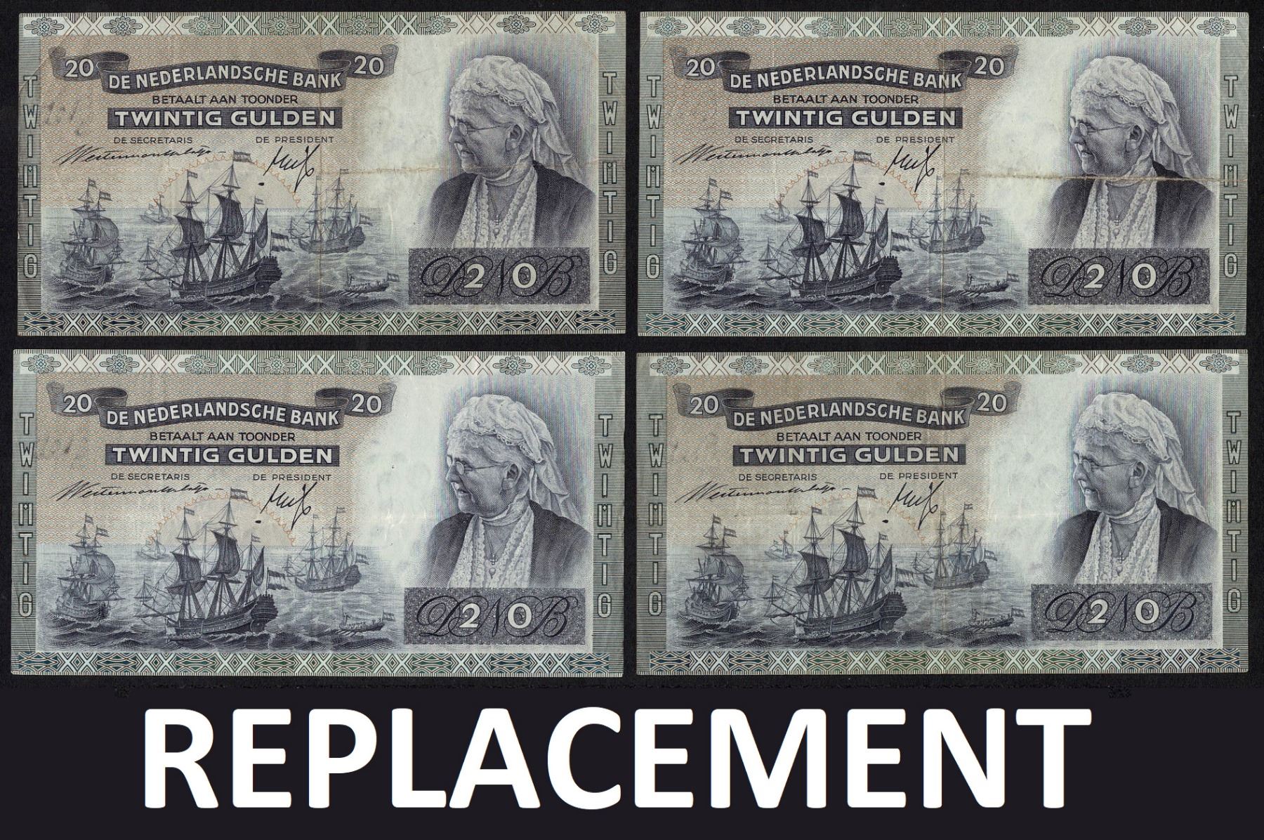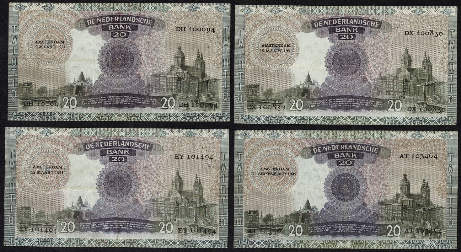 Netherlands 4x 20 Gulden 1939 - 1941 Replacement Queen Emma Pick 54