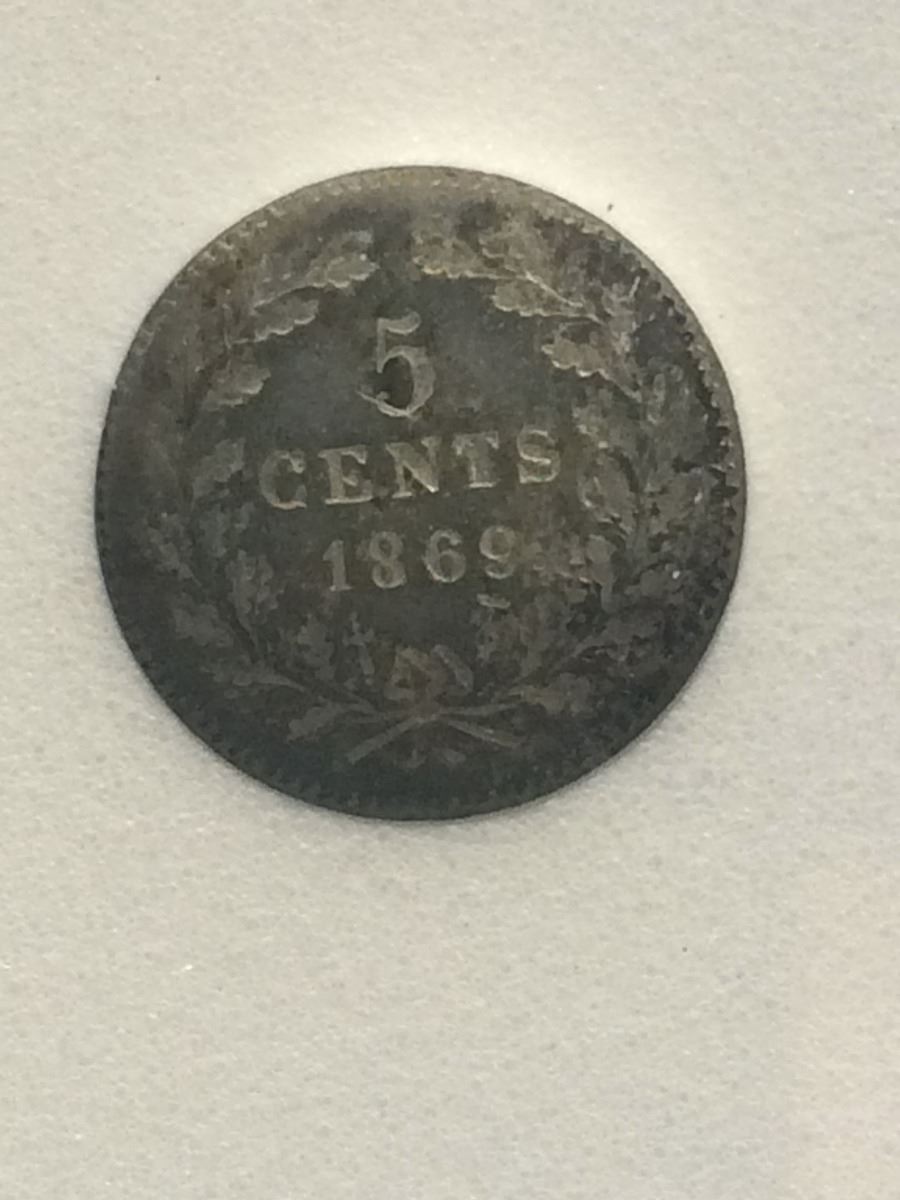 Netherlands 5 Cents 1869; NNC certified AU-55. KM# 91.