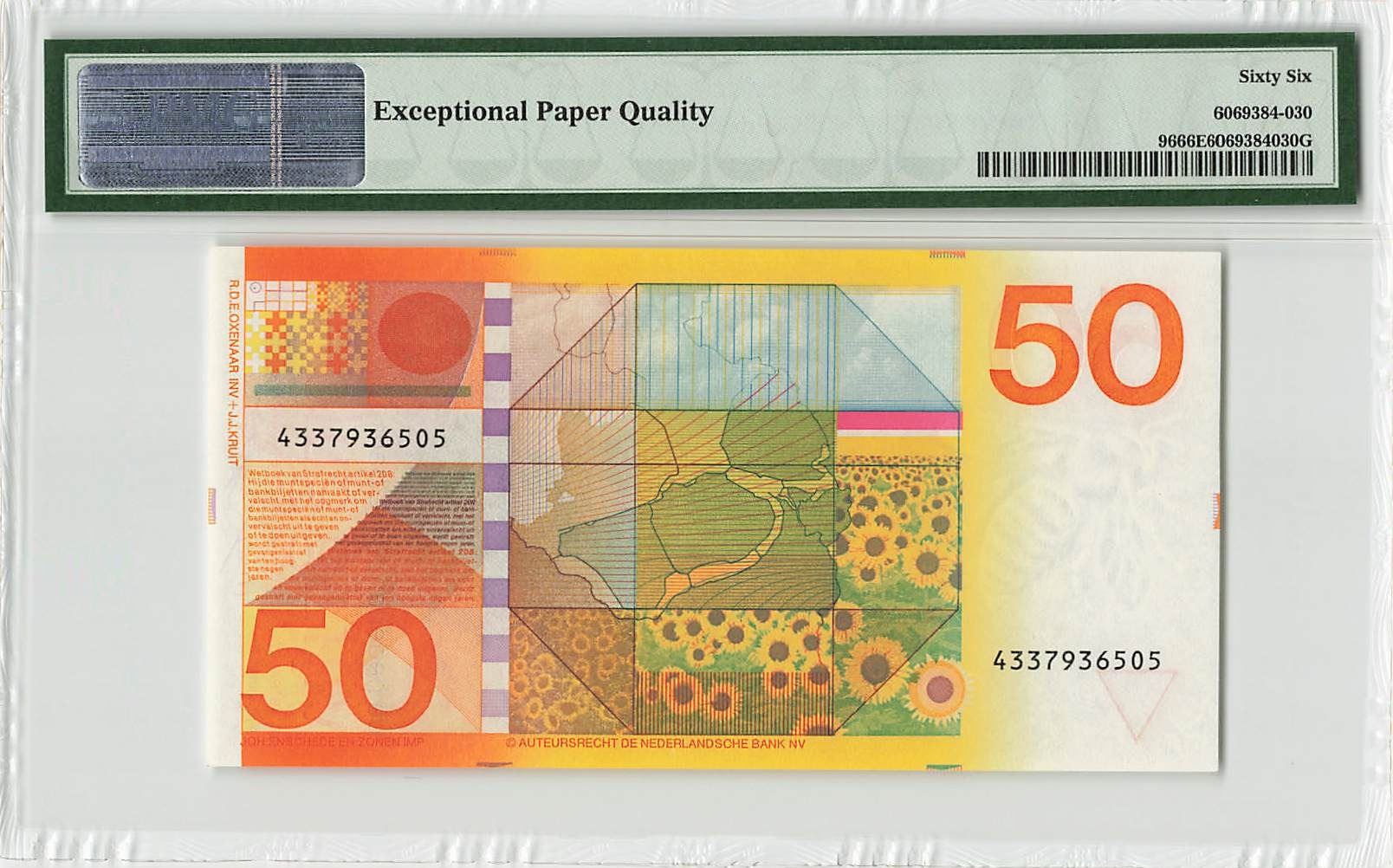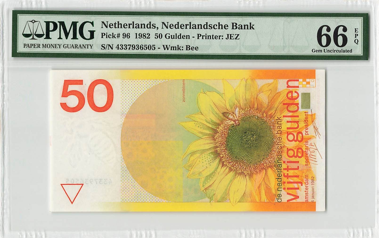 Netherlands 50 Gulden 1982 Sunflower Pick 96 PMG Gem Uncirculated 66 EPQ
