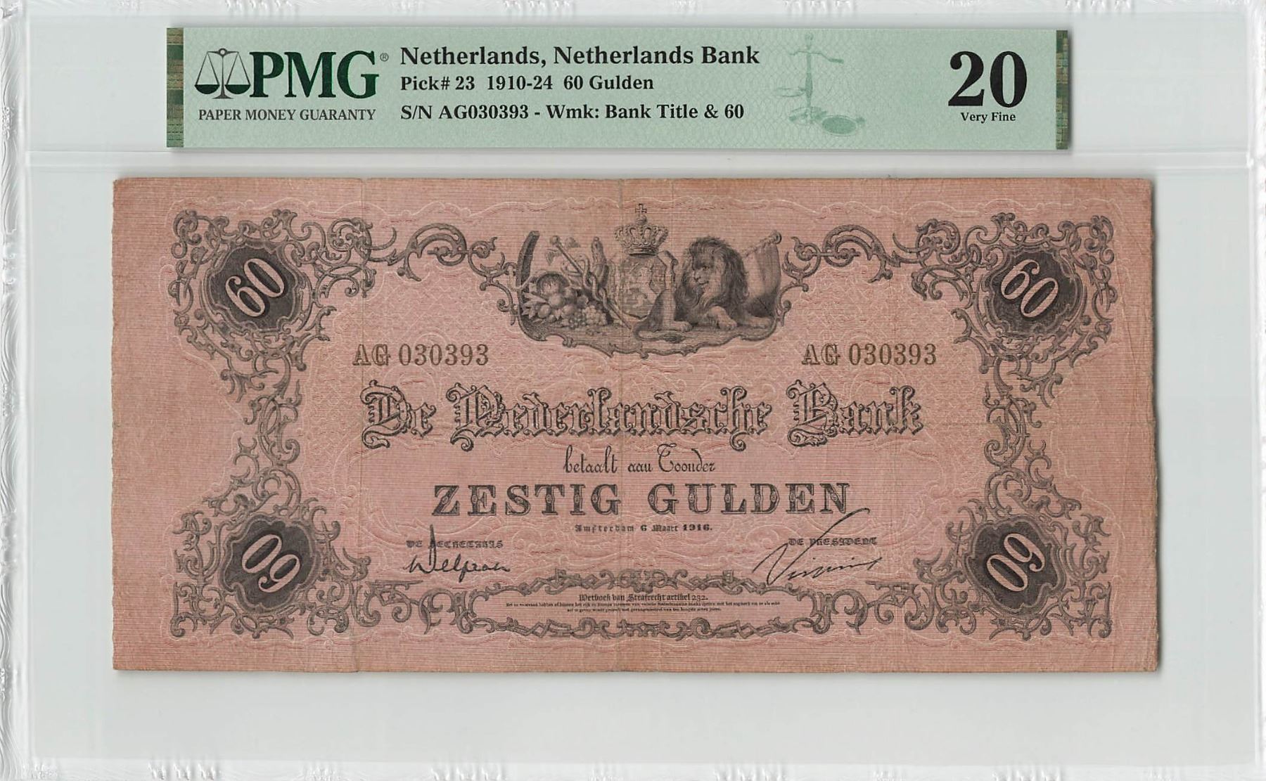 Netherlands 60 Gulden 1916 Reliefrand Pick 23 PMG Very Fine 20