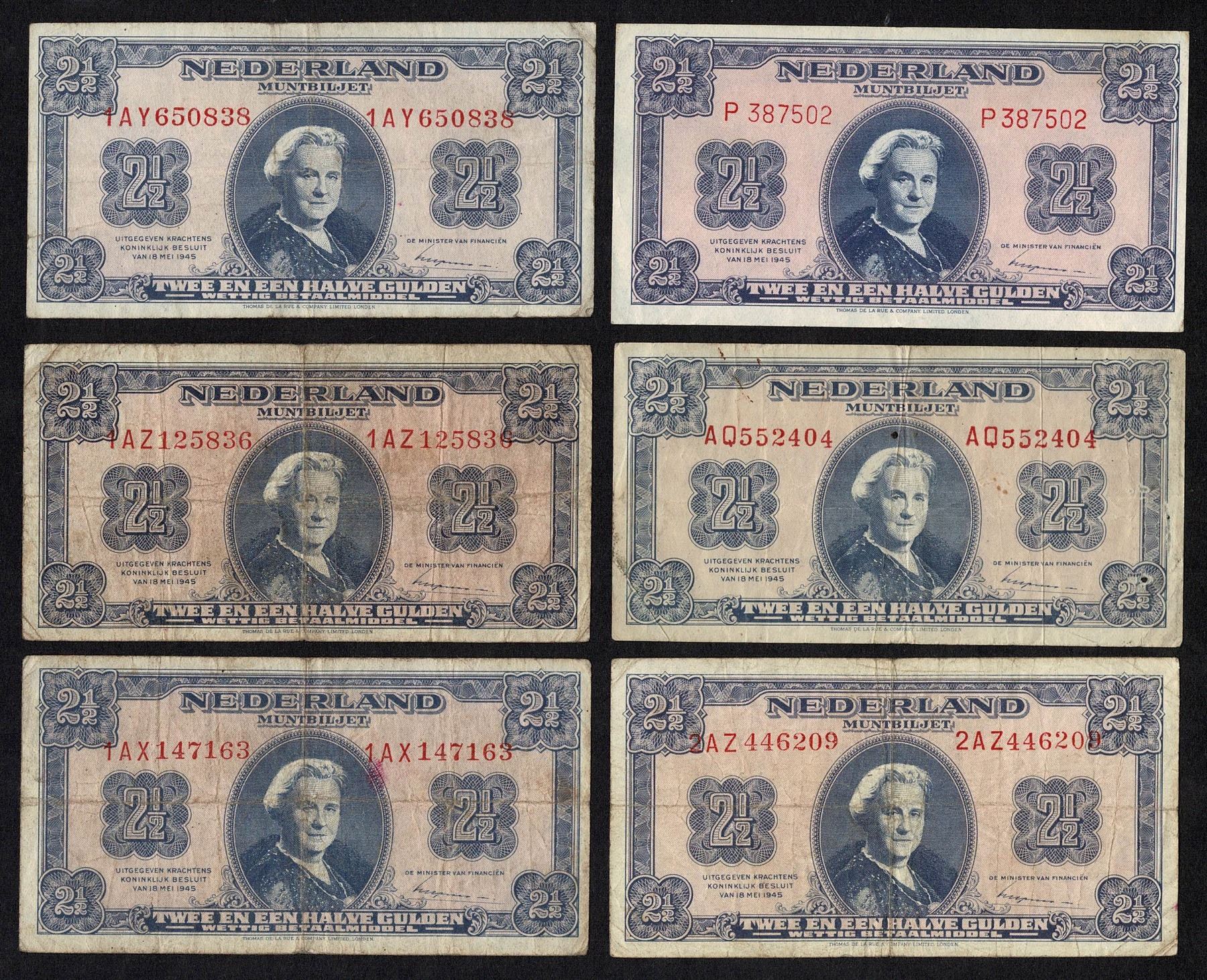 Netherlands 6x 2½ Gulden 1945 State Note Pick 71