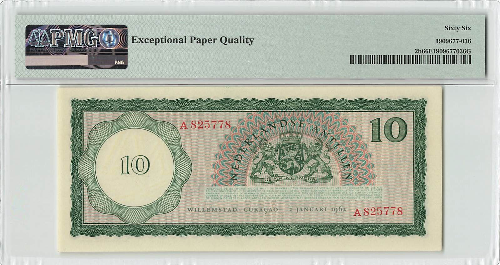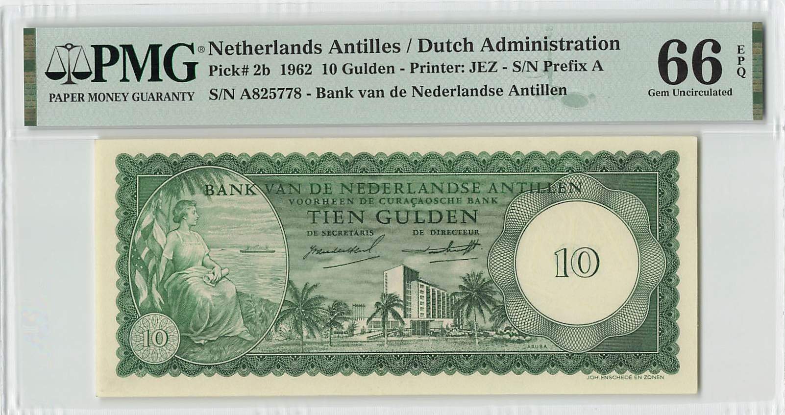 Netherlands Antilles 10 Gulden 1962 Pick 2b PMG Gem Uncirculated 66 EPQ