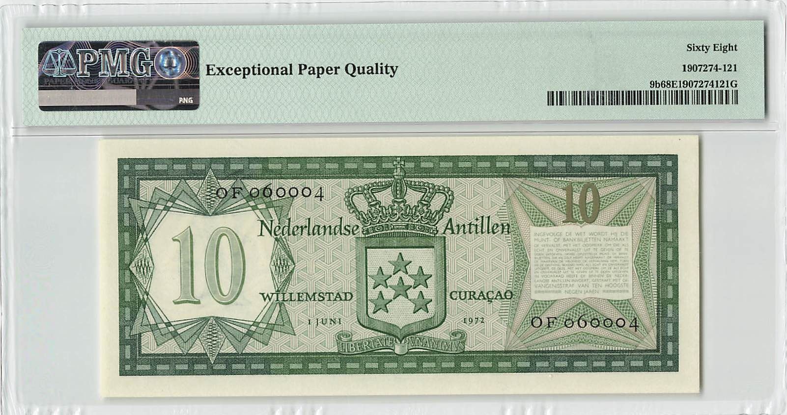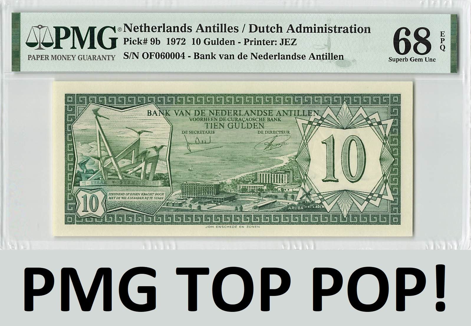 Netherlands Antilles 10 Gulden 1972 Pick 9b PMG Superb Gem Uncirculated 68 EPQ TOP POP