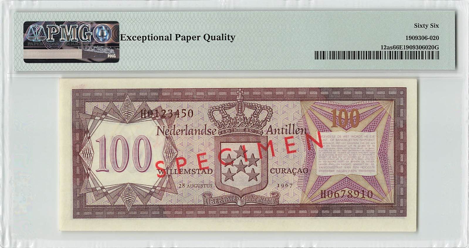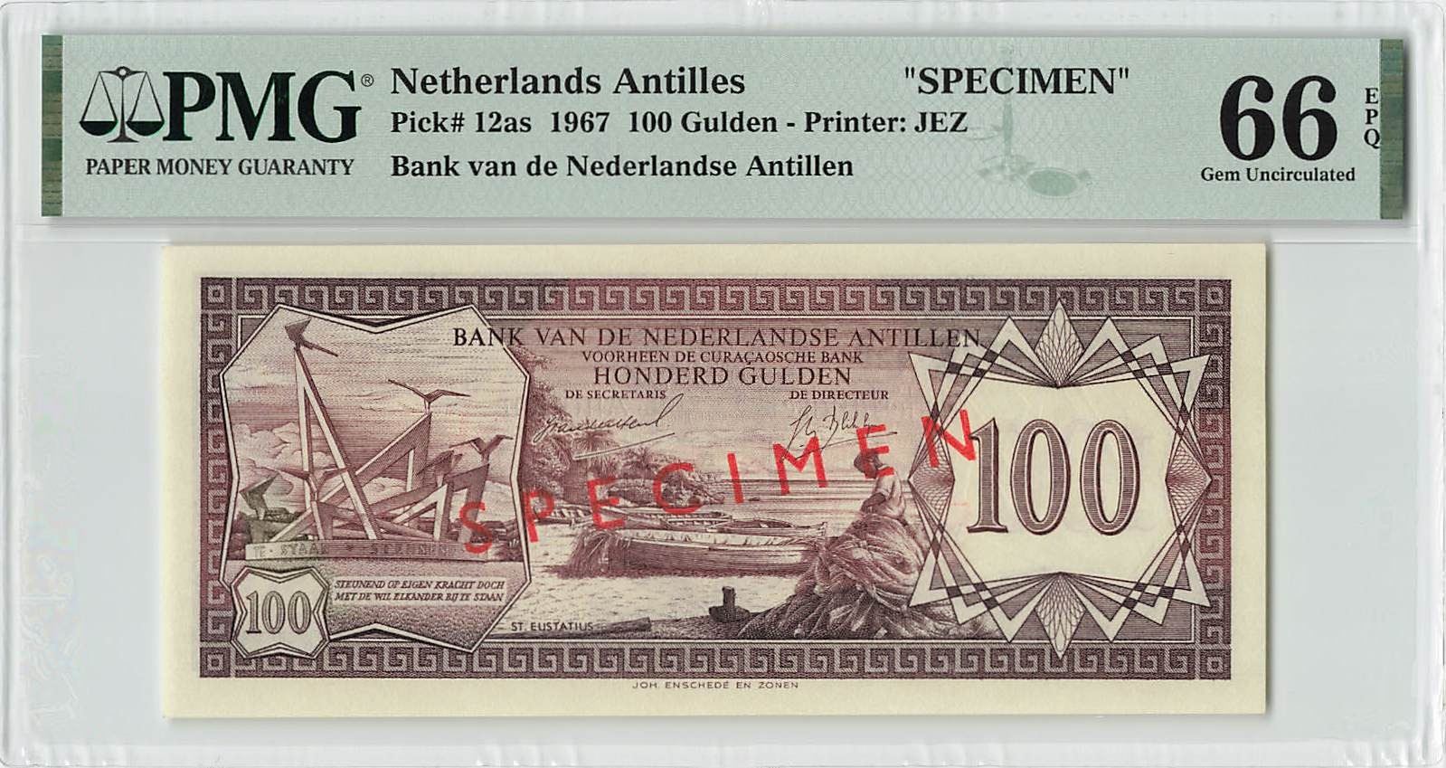 Netherlands Antilles 100 Gulden 1967 Specimen Pick 12as PMG Gem Uncirculated 66 EPQ