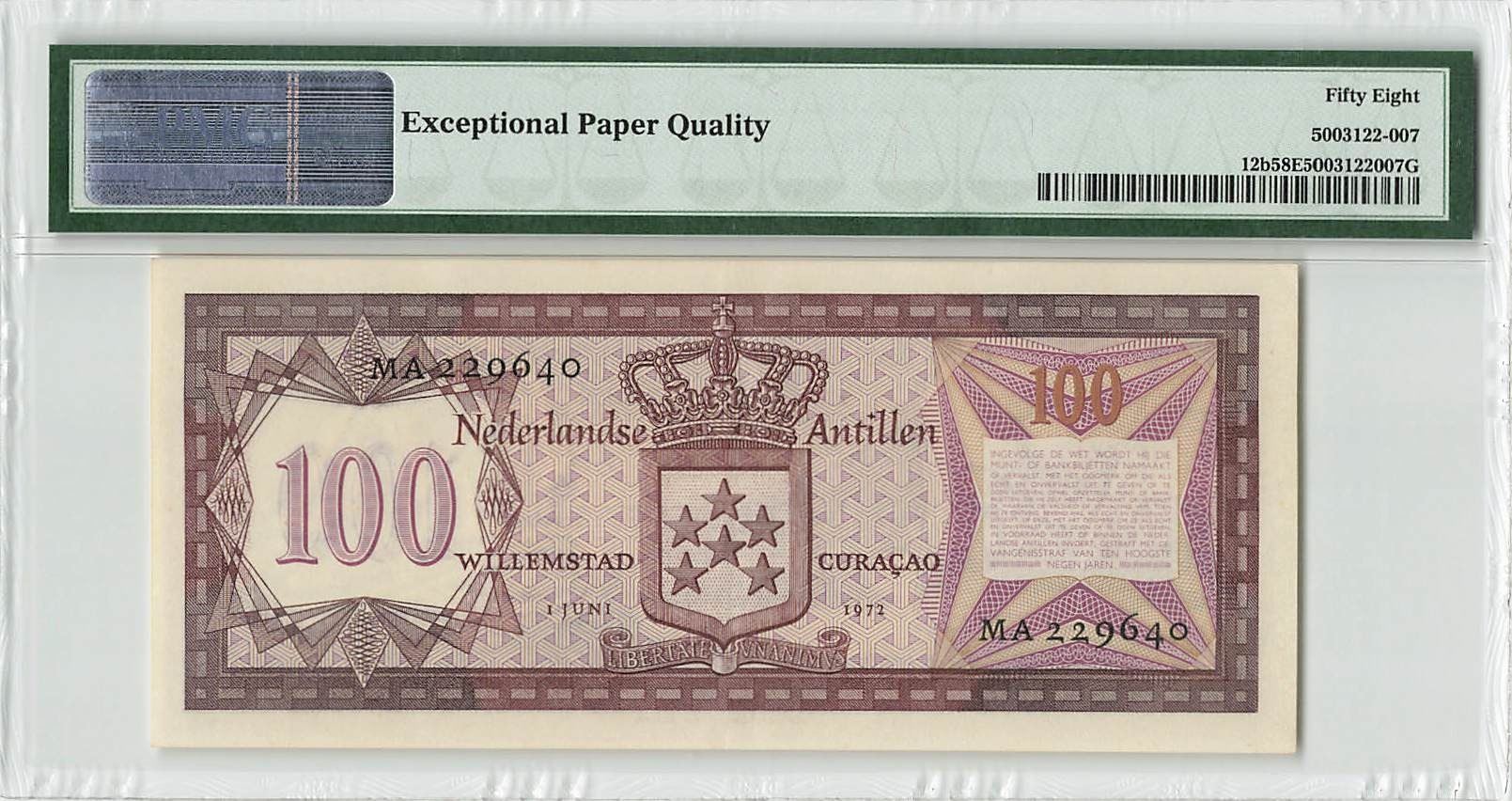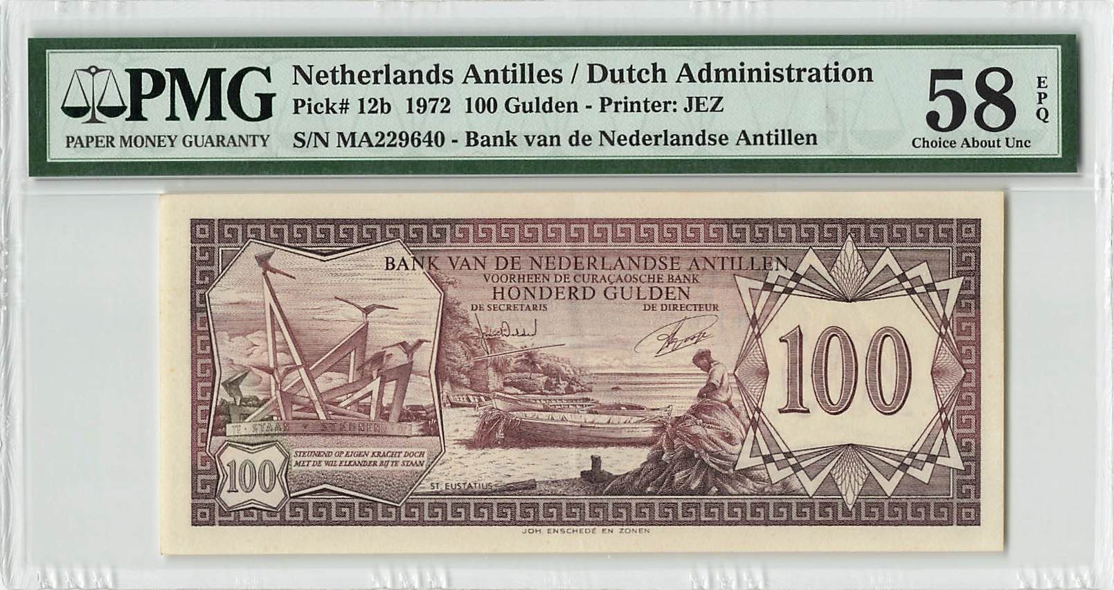 Netherlands Antilles 100 Gulden 1972 Pick 12b PMG Choice About Uncirculated 58 EPQ