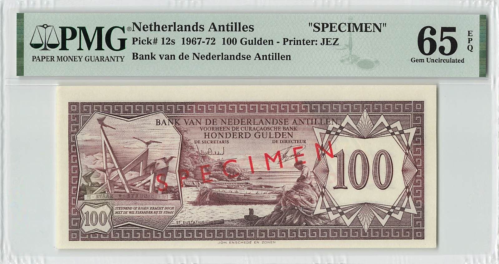 Netherlands Antilles 100 Gulden 1972 Specimen Pick 12s PMG Gem Uncirculated 65 EPQ