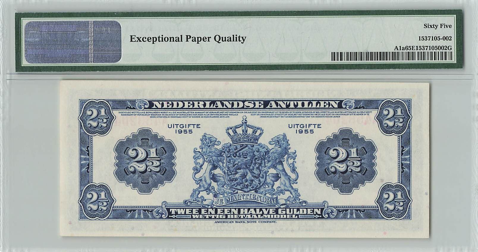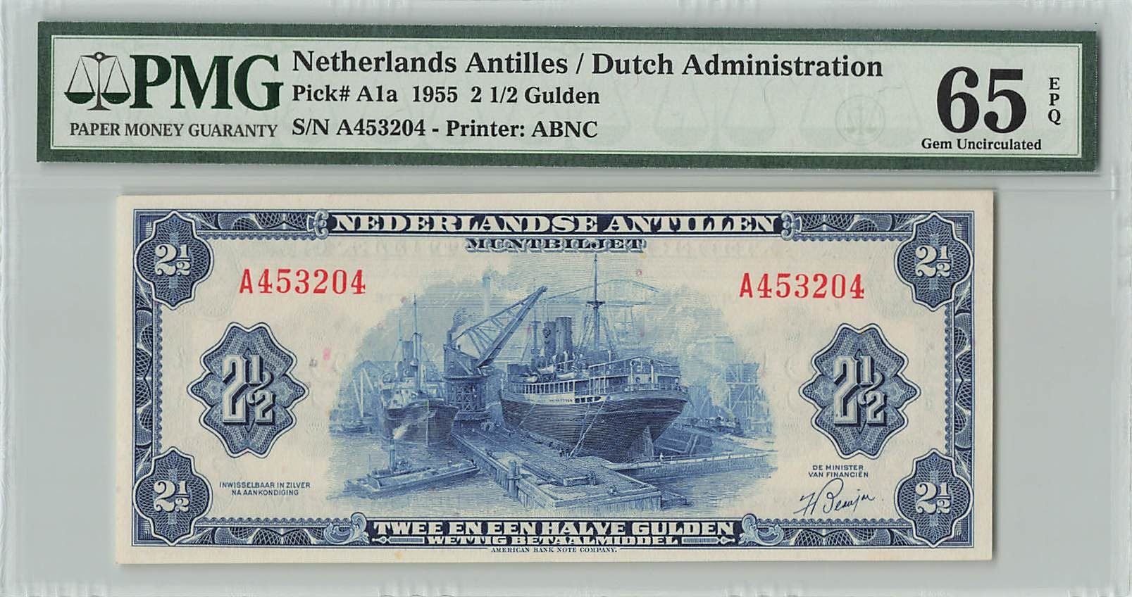 Netherlands Antilles 2½ Gulden 1955 Pick A1a PMG Gem Uncirculated 65 EPQ