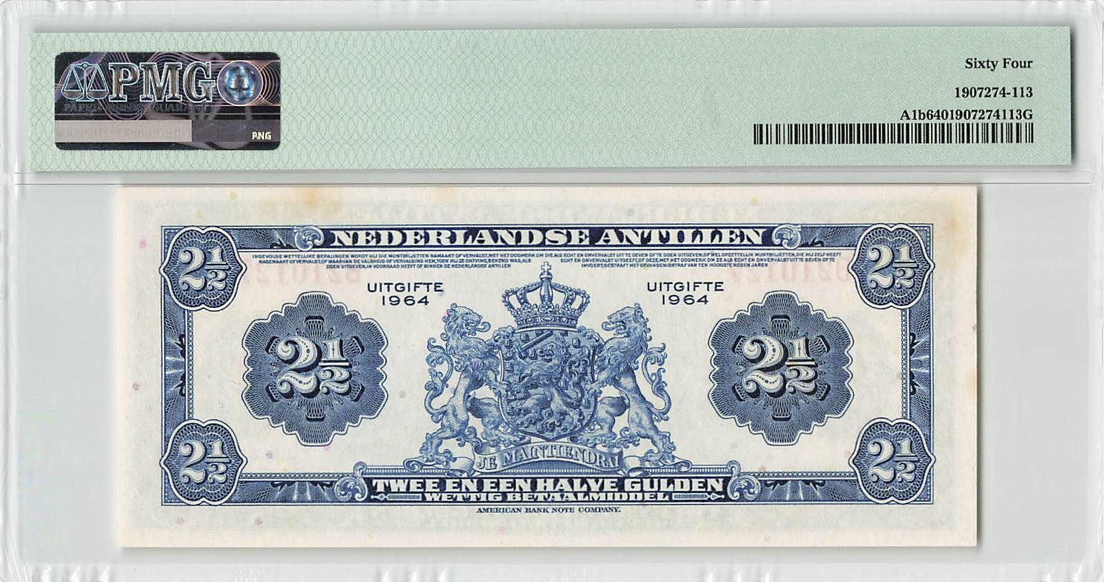 Netherlands Antilles 2½ Gulden 1964 ABNC Pick A1b PMG Choice Uncirculated 64