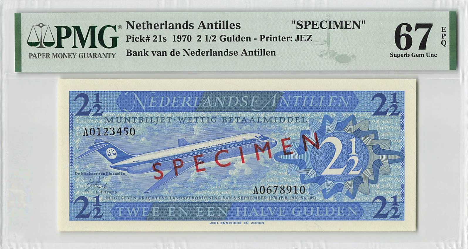 Netherlands Antilles 2½ Gulden 1970 Specimen Pick 21s PMG Superb Gem Uncirculated 67 EPQ