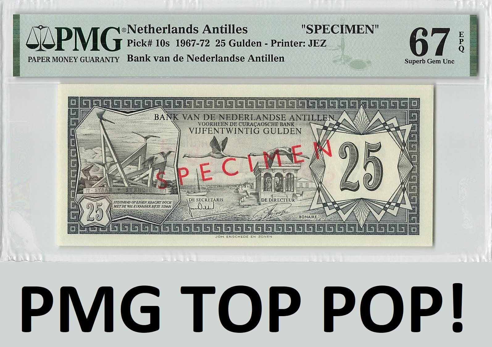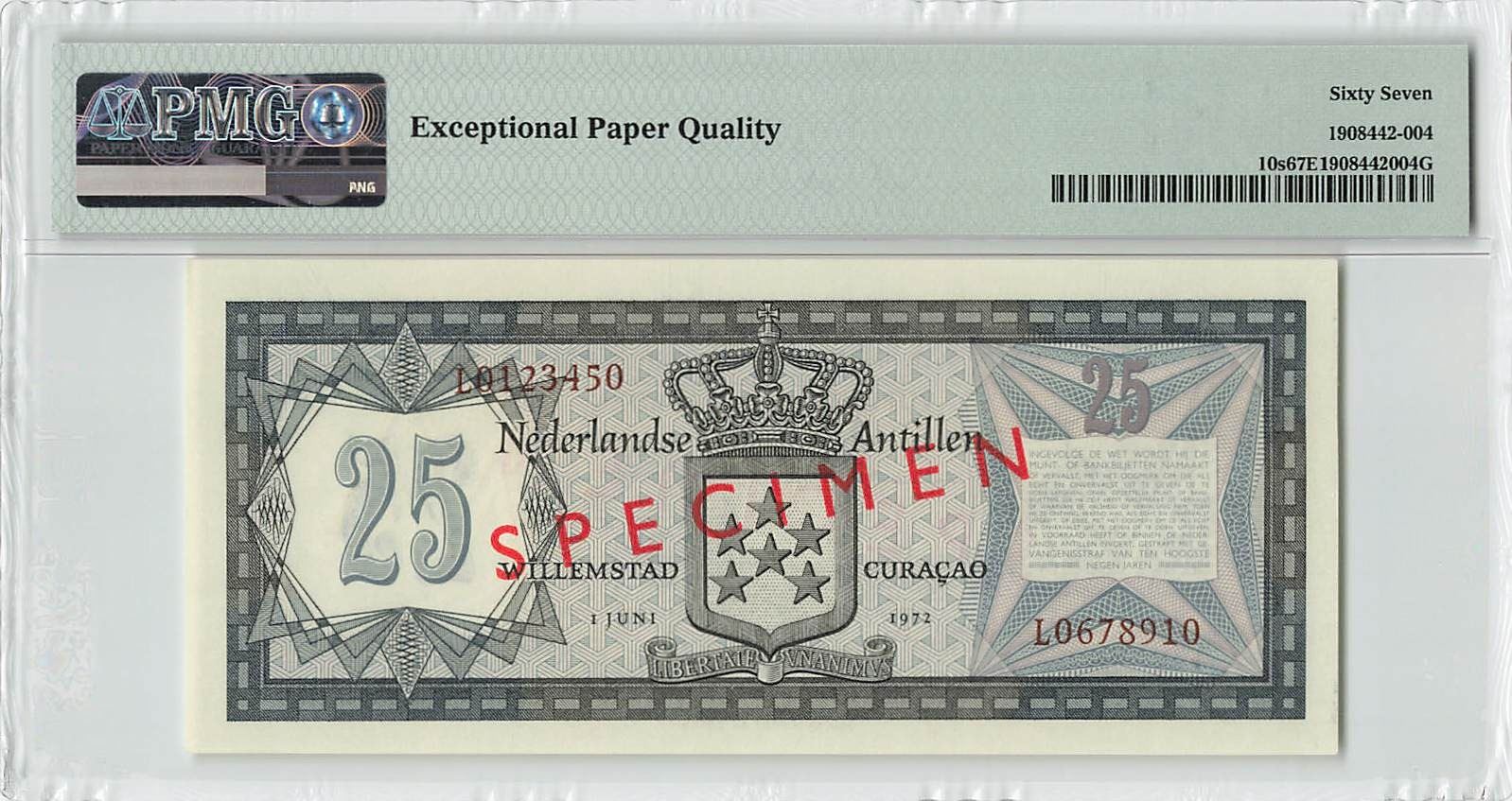 Netherlands Antilles 25 Gulden 1972 Specimen Pick 10s PMG Superb Gem UNC 67 EPQ TOP POP
