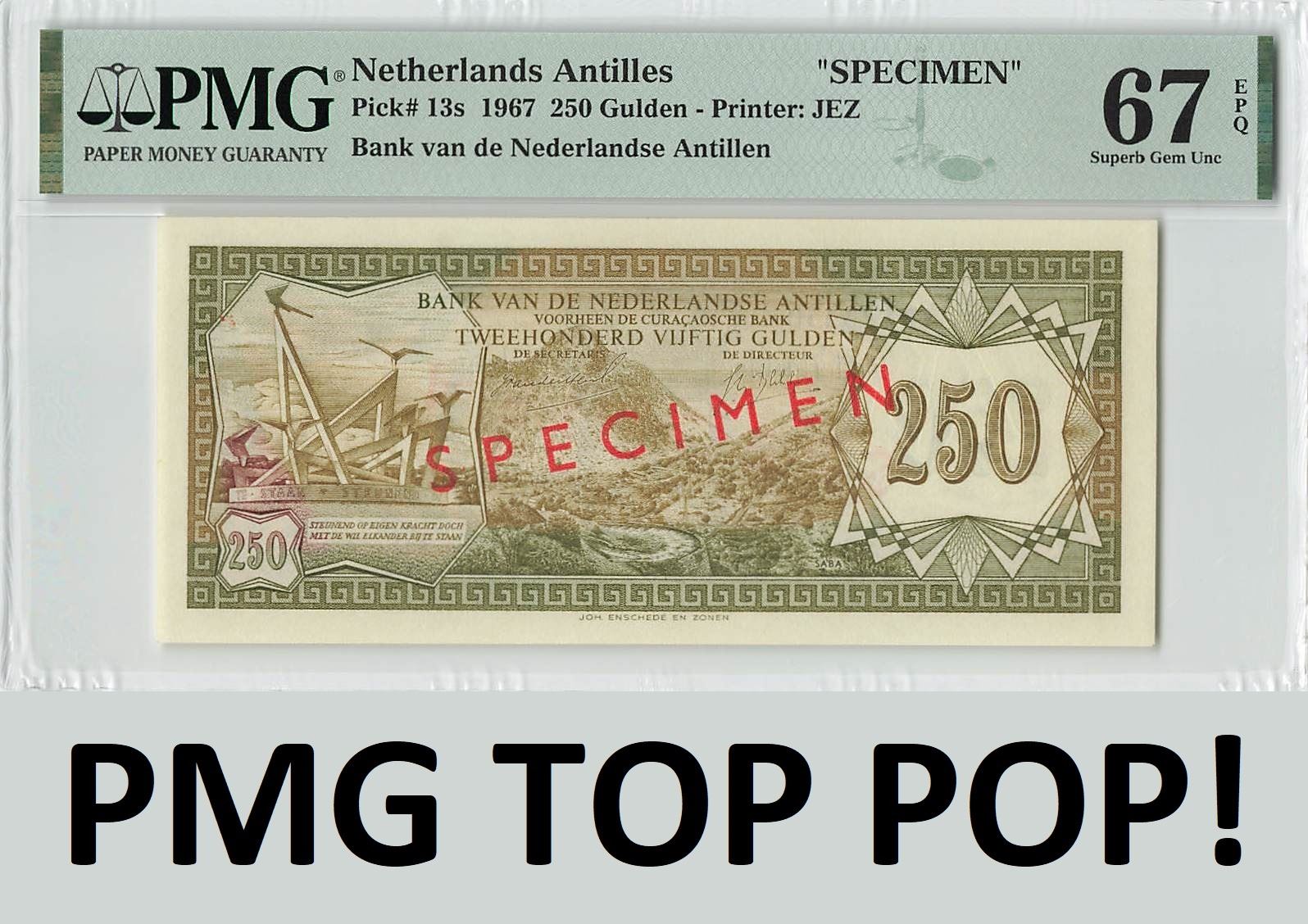 Netherlands Antilles 250 Gulden 1967 Specimen Pick 13s PMG Superb Gem Uncirculated 67 EPQ